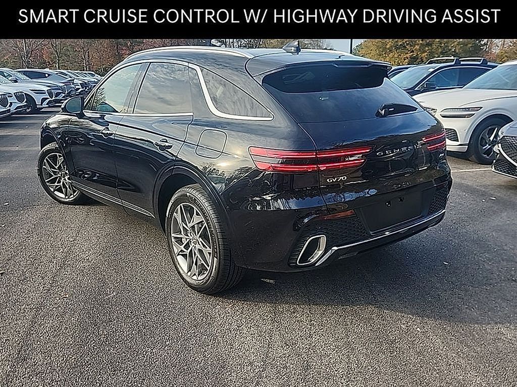 Genesis Certified!! Vik Black 2025 Genesis GV70 2.5T Advanced AWD with 8-speed Automatic (300 HP / 311 lb.-ft). Equipped with: Heated Leather Seats, Heated Steering Wheel, Smart Cruise Control w/ Stop & Go, Intelligent Speed Limit Assist, Highway Driving Assist, Panoramic Sunroof, Surround View Monitor, Blind-Spot View Monitor, Parking Collision-Avoidance Assist - Reverse, Advanced Rear Occupant Alert, Wave Line Backlit Trim, Navigation System w/ 14.5" HD Screen, Apple CarPlayTM & Android AutoTM, Wireless Device Charger, Fingerprint Authentication System, 18-inch Alloy Wheels, Power Hands-Free Smart Liftgate w/ Auto Open, Heated Outside Mirrors w/ Turn-Signal Indicator, High Beam Assist.