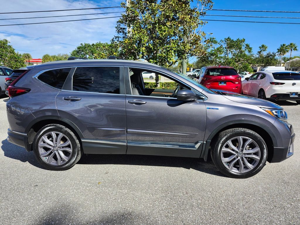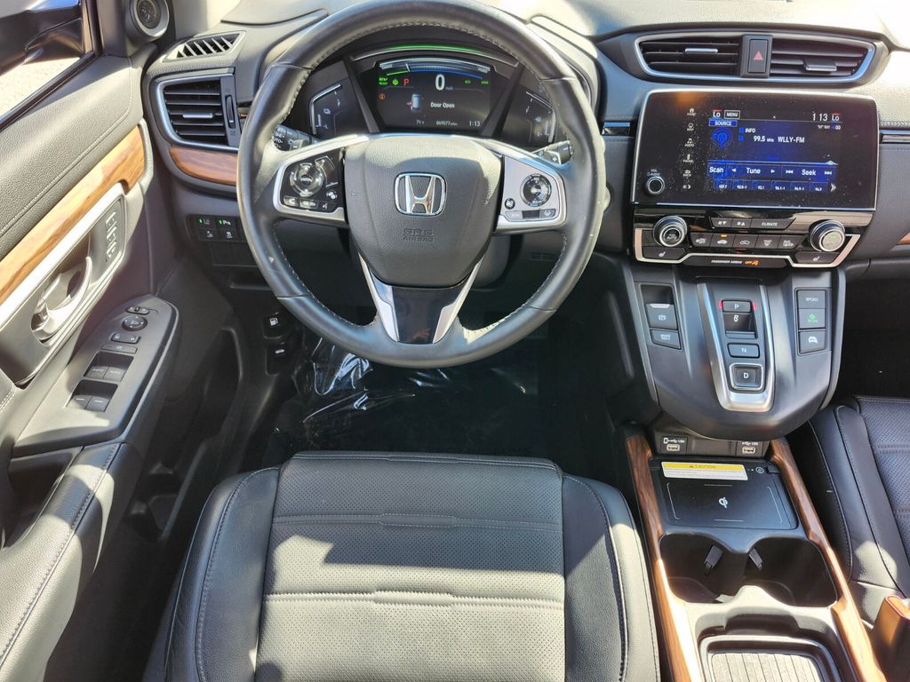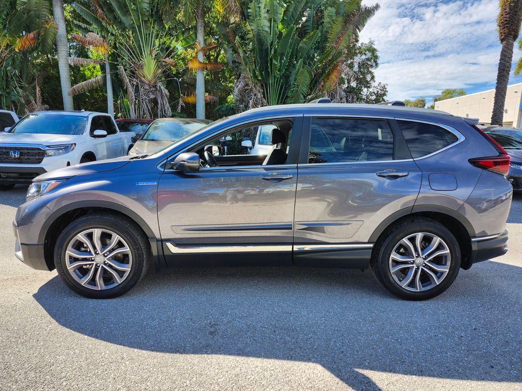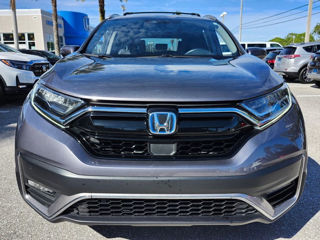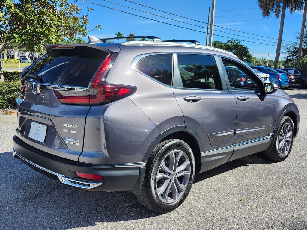CARFAX One-Owner. Certified. Modern Steel Metallic 2022 Honda CR-V Hybrid Touring AWD eCVT 2.0L I4 DOHC 16V 40/35 City/Highway MPG CR-V Hybrid Touring, AWD, Adaptive Cruise Control: Adaptive Cruise Control (ACC) with Low-Speed Follow, Apple CarPlay/Android Auto, Auto High-beam Headlights, Automatic temperature control, Blind Spot Information (BSI) System warning, Exterior Parking Camera Rear, Forward collision: Collision Mitigation Braking System (CMBS) + FCW mitigation, Front dual zone A/C, Garage door transmitter: HomeLink, Heated front seats, Heated steering wheel, Leather Seat Trim, Memory seat, Power driver seat, Power Liftgate, Power moonroof, Power passenger seat, Wheels: 19" Machine-Finished Alloy w/Gray Inserts.