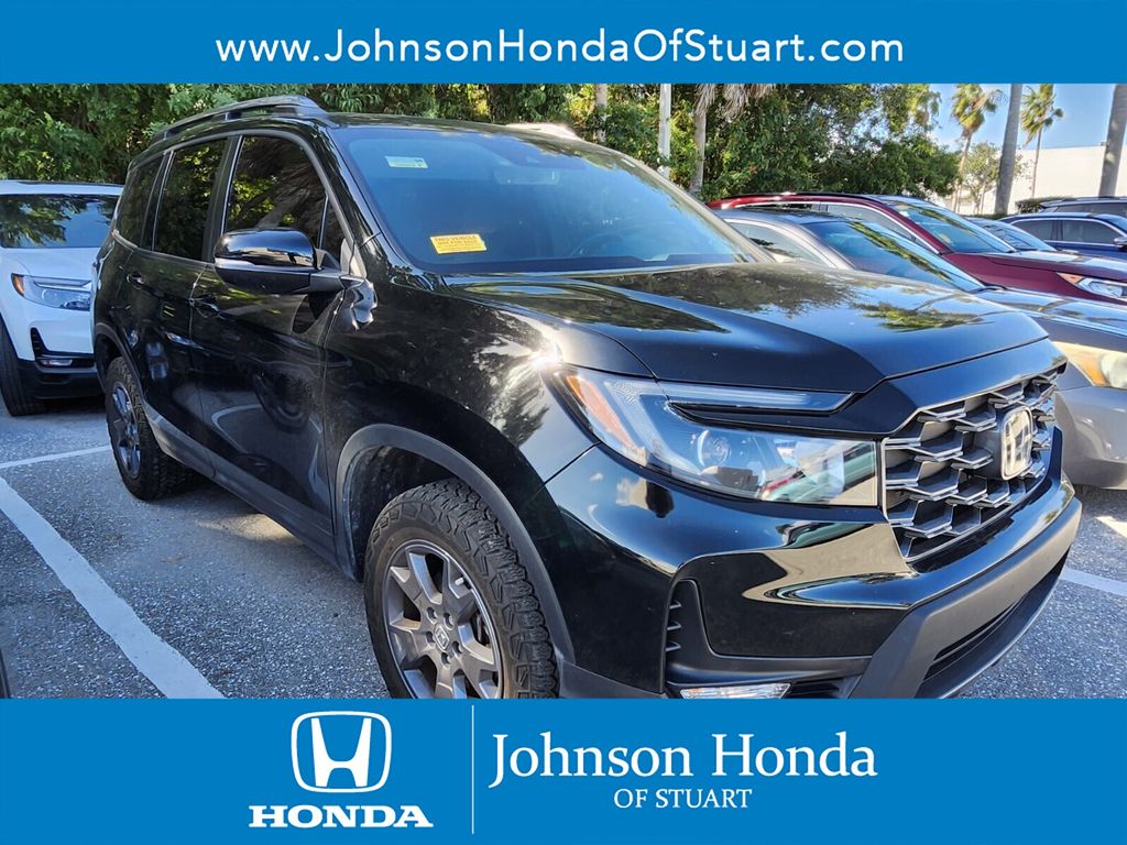Recent Arrival! CARFAX One-Owner. Certified. Crystal Black Pearl 2024 Honda Passport TrailSport AWD 9-Speed Automatic 3.5L V6 24V SOHC i-VTEC Passport TrailSport, AWD, Black w/Leather-Trimmed Seats, Apple CarPlay/Android Auto, Auto High-beam Headlights, Automatic temperature control, Blind Spot Information (BSI) System warning, Exterior Parking Camera Rear, Front dual zone A/C, Heated front seats, Lane departure: Lane Keeping Assist System (LKAS) active, Leather-Trimmed Seats, Navigation system: Honda Satellite-Linked Navigation System, Power driver seat, Power Liftgate, Power moonroof, Power passenger seat, Rear air conditioning, Wheels: 18" Pewter Gray Alloy.