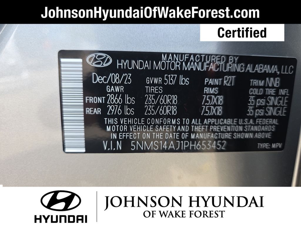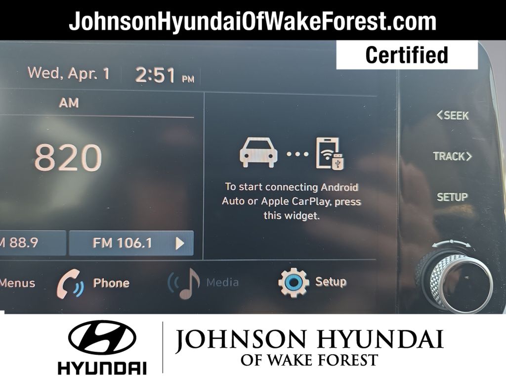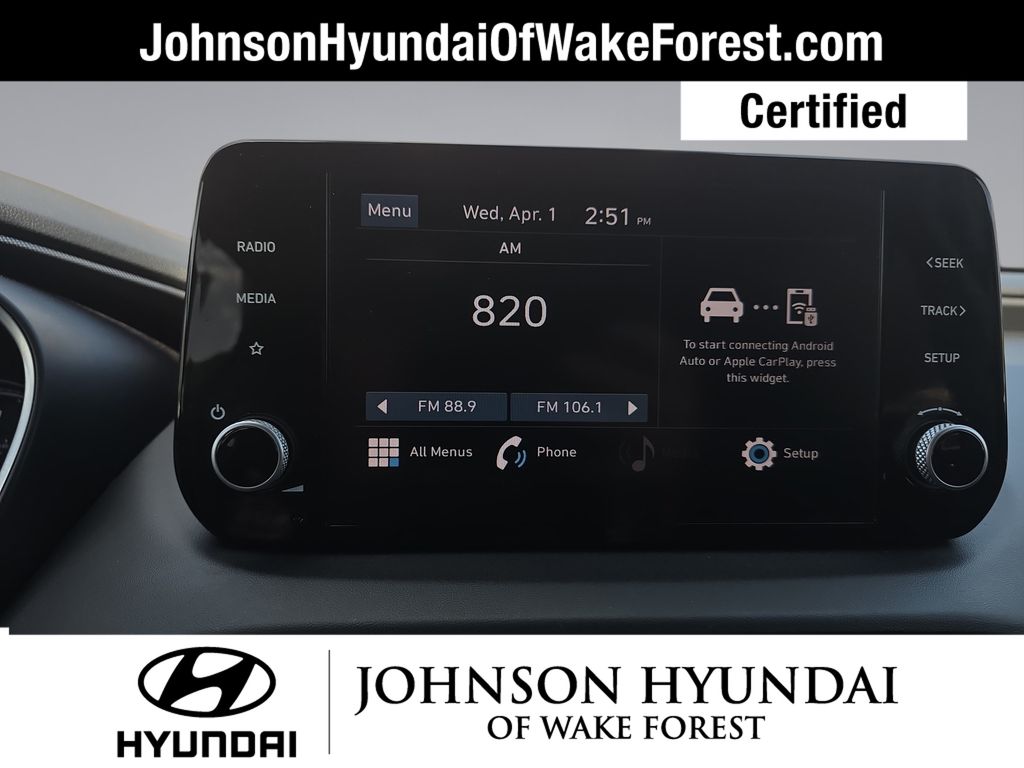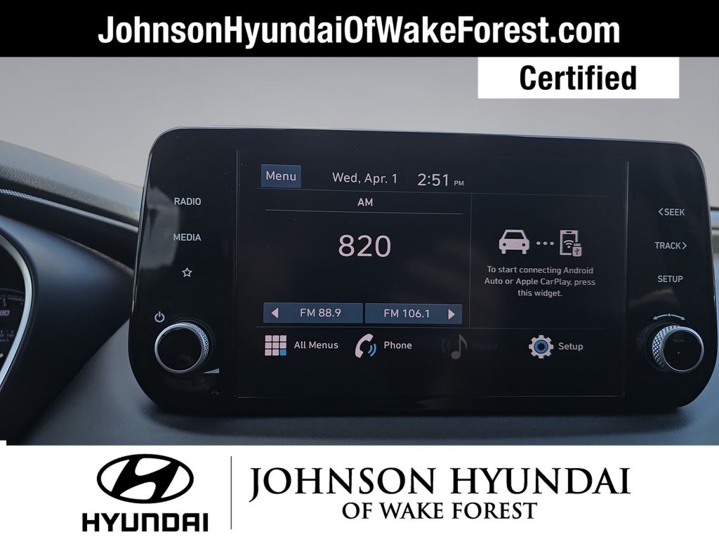 CARFAX CERTIFIED ONE OWNER - NO ACCIDENTS, CARFAX CERTIFIED ONE OWNER, Hyundai Certified Used Vehicles Certified, Black Cloth, 18" x 7.5J Alloy Wheels, 4-Wheel Disc Brakes, 6 Speakers, ABS brakes, Air Conditioning, Alloy wheels, AM/FM radio, Apple CarPlay & Android Auto, Auto High-beam Headlights, Axle Ratio: 3.798, Brake assist, Bumpers: body-color, Cargo Cover/Screen, Cargo Net, Carpeted Floor Mats, Delay-off headlights, Driver door bin, Driver vanity mirror, Dual front impact airbags, Dual front side impact airbags, Electronic Stability Control, Exterior Parking Camera Rear, First Aid Kit, Four wheel independent suspension, Front anti-roll bar, Front Bucket Seats, Front Center Armrest, Front reading lights, Fully automatic headlights, Illuminated entry, Low tire pressure warning, Mudguards, Occupant sensing airbag, Option Group 01, Outside temperature display, Overhead airbag, Overhead console, Panic alarm, Passenger door bin, Passenger vanity mirror, Power door mirrors, Power steering, Power windows, Radio: AM/FM Display Audio, Rear anti-roll bar, Rear seat center armrest, Rear window defroster, Rear window wiper, Remote keyless entry, Security system, Speed control, Speed-sensing steering, Split folding rear seat, Spoiler, Stain-Resistant Cloth Seat Trim, Steering wheel mounted audio controls, Tachometer, Telescoping steering wheel, Tilt steering wheel, Traction control, Trip computer, Variably intermittent wipers, Black Cloth.