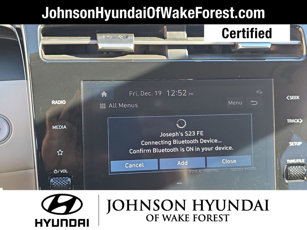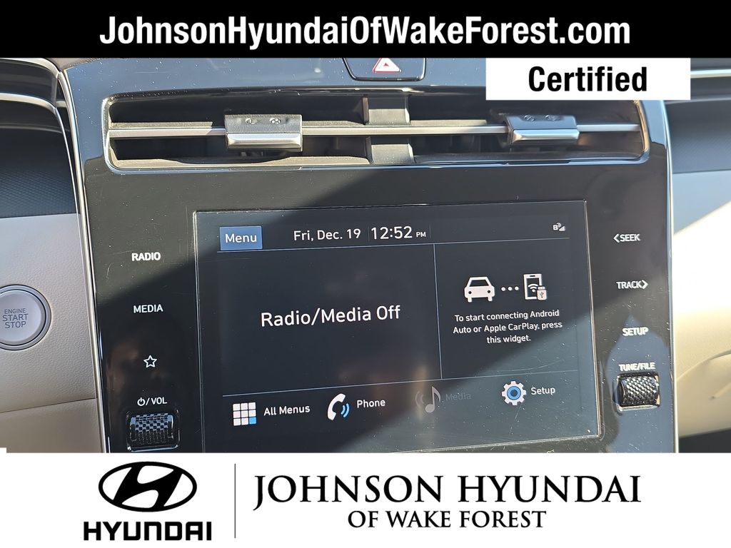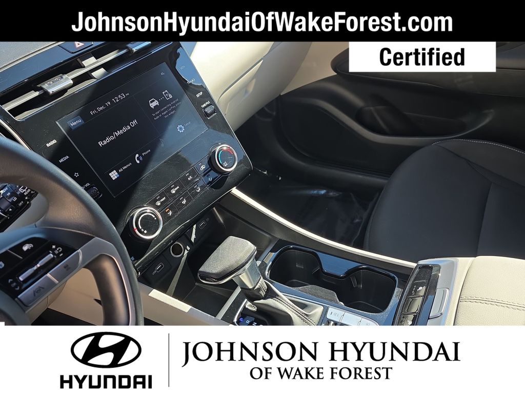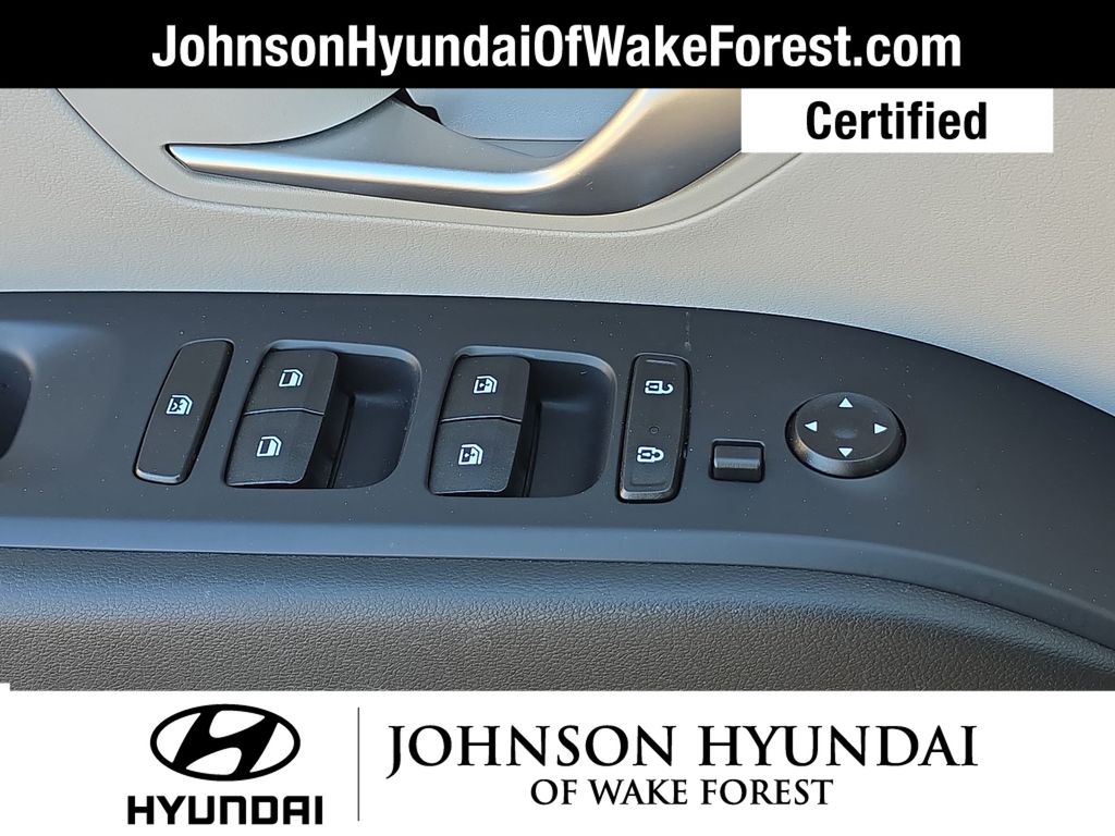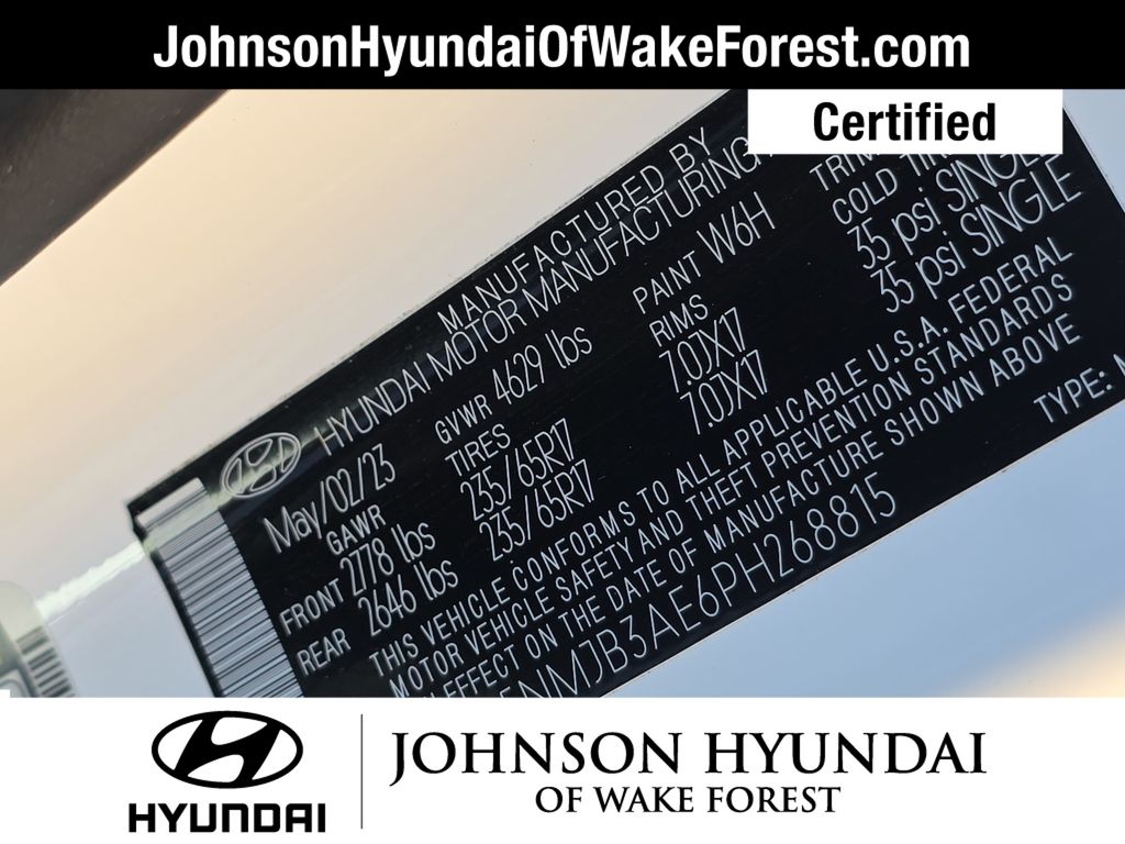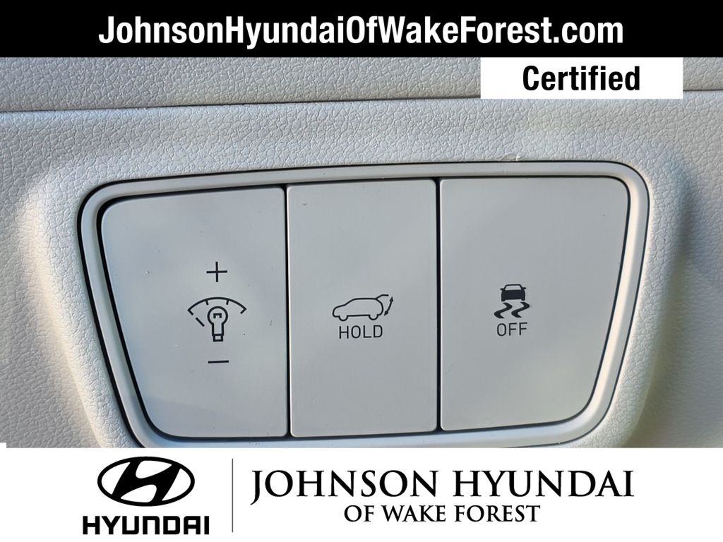 Hyundai Certified Used Vehicles Certified, Apple CarPlay & Android Auto, Emergency communication system: Blue Link Connected Car Service (3-year complimentary subscription), Fully automatic headlights, Heated door mirrors, Heated Front Bucket Seats, Option Group 01, Outside temperature display, Power driver seat, Power Liftgate, Radio: AM/FM/HD/SiriusXM Audio System, Telescoping steering wheel, 3.648 Axle Ratio, 4-Wheel Disc Brakes, 6 Speakers, ABS brakes, Air Conditioning, Alloy wheels, AM/FM radio: SiriusXM, Auto High-beam Headlights, Brake assist, Bumpers: body-color, Cargo Net, Cargo Tray, Carpeted Floor Mats, Delay-off headlights, Driver door bin, Driver vanity mirror, Dual front impact airbags, Dual front side impact airbags, Electronic Stability Control, First Aid Kit, Four wheel independent suspension, Front and Rear Mudguards, Front anti-roll bar, Front Bucket Seats, Front Center Armrest, Front reading lights, H-Tex Seat Trim, Heated front seats, Illuminated entry, Low tire pressure warning, Occupant sensing airbag, Overhead airbag, Overhead console, Panic alarm, Passenger door bin, Passenger vanity mirror, Power door mirrors, Power steering, Power windows, Radio data system, Rear anti-roll bar, Rear seat center armrest, Rear window defroster, Rear window wiper, Remote keyless entry, Roof rack: rails only, Security system, Speed control, Split folding rear seat, Spoiler, Stain & Odor Resistant Cloth Seat Trim, Steering wheel mounted audio controls, Tachometer, Tilt steering wheel, Traction control, Trip computer, Turn signal indicator mirrors, Variably intermittent wipers, Wheels: 17" x 7.0J" Alloy, Apple CarPlay & Android Auto, Emergency communication system: Blue Link Connected Car Service (3-year complimentary subscription), Fully automatic headlights, Heated door mirrors, Heated Front Bucket Seats, Option Group 01, Outside temperature display, Power driver seat, Power Liftgate, Radio: AM/FM/HD/SiriusXM Audio System, Telescoping steering wheel.