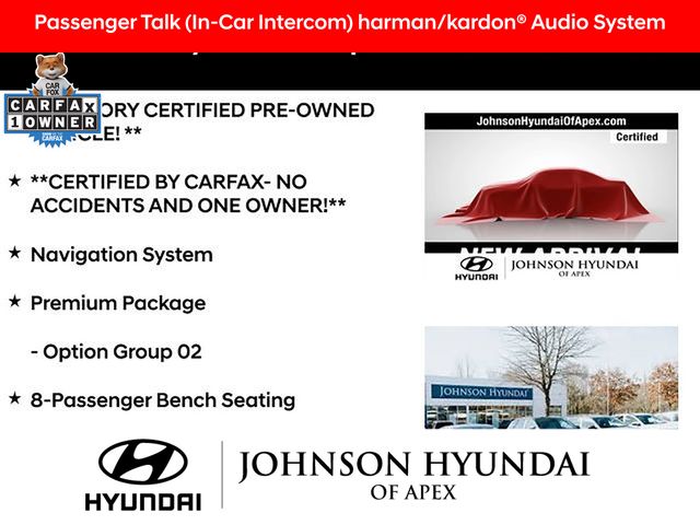 **FACTORY CERTIFIED PRE-OWNED VEHICLE! **, **CERTIFIED BY CARFAX- NO ACCIDENTS AND ONE OWNER!**, 115-Volt AC Power Outlet, 12.3" Full-Digital Multi-Information Display, 3rd Row USB Outlets, 8-Passenger Bench Seating, Acoustic Rear Side Glass, Apple CarPlay & Android Auto, Auto-dimming door mirrors, Auto-dimming Rear-View mirror, Automatic temperature control, Blind-Spot View Monitor, Driver 4-Way Power Lumbar Support, Exterior Parking Camera Rear, Forward Collision Avoidance Assist, Front dual zone A/C, Front Parking Sensors, Fully automatic headlights, H-Tex Leatherette Seat Trim, harman/kardon® Audio System, Heated 2nd Row Seats, Heated door mirrors, Heated Front Bucket Seats, Heated Steering Wheel, Highway Driving Assist 2, HomeLink, Hydro-Phobic Front Side Glass, Integrated Memory Driver Seat & Mirrors, Navigation System, Option Group 02, Outside temperature display, Passenger Talk (In-Car Intercom), Power driver seat, Power Liftgate, Power passenger seat, Power Sunroof, Premium Package, Radio: AM/FM/MP3 Audio System, Rear air conditioning, Rear Side Window Sunshades, Surround View Monitor, Telescoping steering wheel, Ventilated Front & 2nd-Row Seats, Wheels: 20" x 7.5J Alloy.