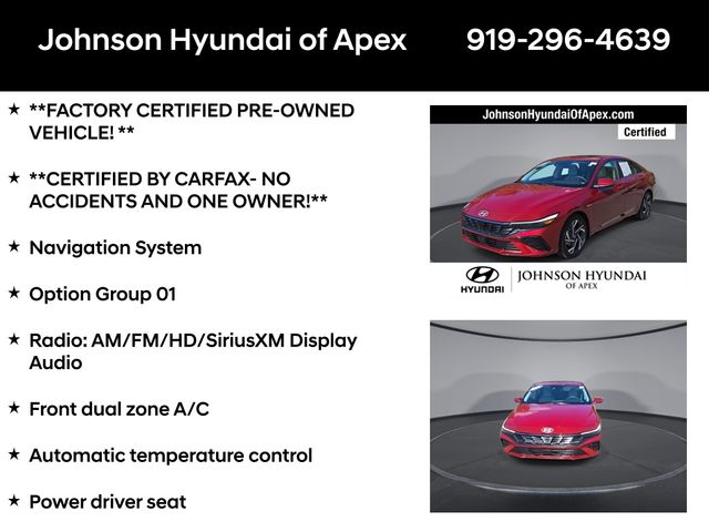 **FACTORY CERTIFIED PRE-OWNED VEHICLE! **, **CERTIFIED BY CARFAX- NO ACCIDENTS AND ONE OWNER!**, 17" x 7.0J Alloy Wheels, Apple CarPlay & Android Auto, Auto-dimming Rear-View mirror, Automatic temperature control, Emergency communication system: Bluelink+, Front dual zone A/C, Fully automatic headlights, H-Tex Leatherette Seats, Heated door mirrors, Heated Front Bucket Seats, Leather steering wheel, Navigation System, Option Group 01, Outside temperature display, Power driver seat, Power moonroof, Radio: AM/FM/HD/SiriusXM Display Audio, Telescoping steering wheel.