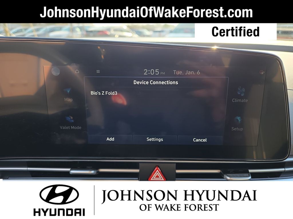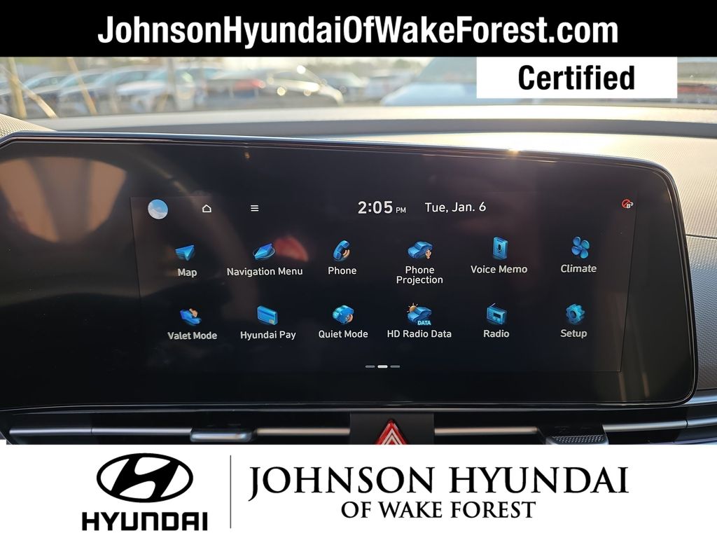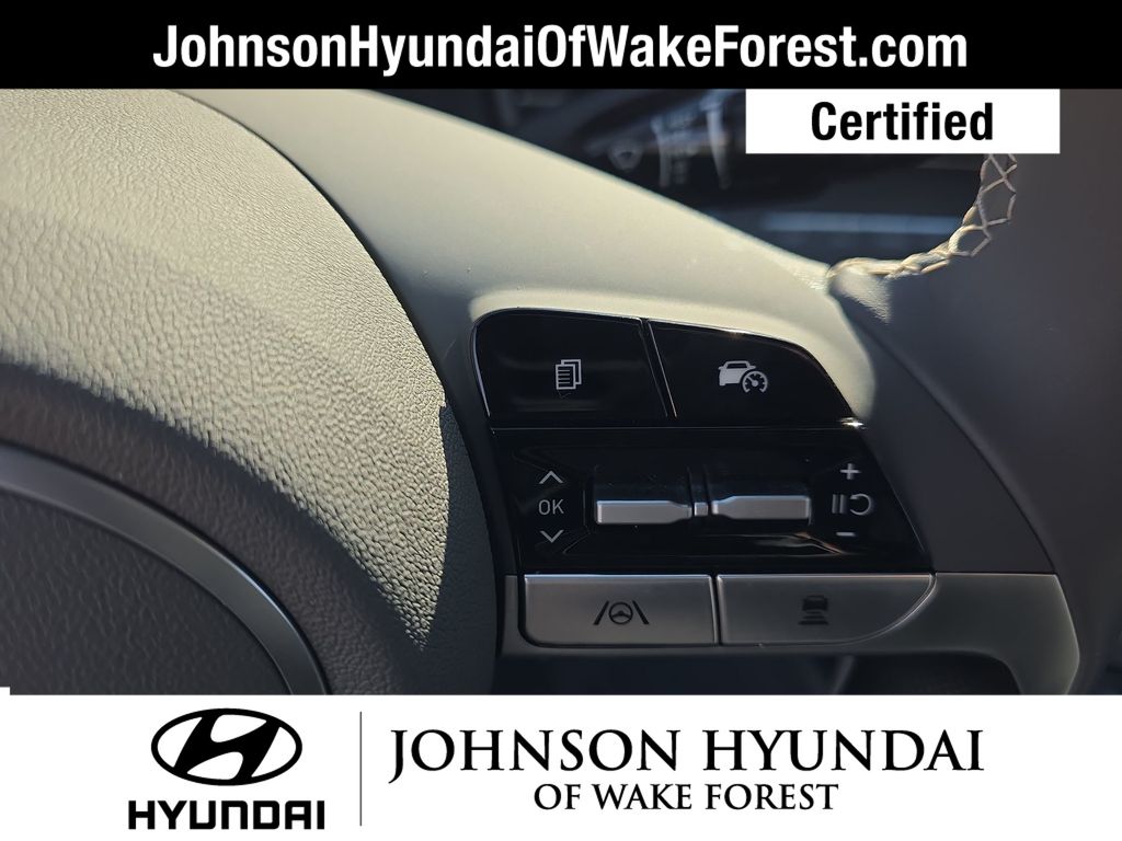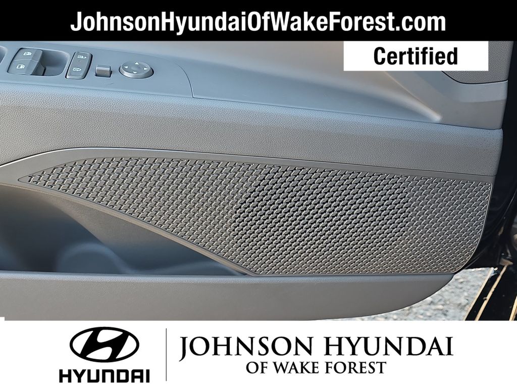 Hyundai Certified Used Vehicles Certified, 17" x 7.0J Alloy Wheels, Apple CarPlay & Android Auto, Automatic temperature control, Emergency communication system: Bluelink+, Exterior Parking Camera Rear, Front dual zone A/C, Fully automatic headlights, Heated door mirrors, Heated Front Bucket Seats, Leather Shift Knob, Leather steering wheel, Navigation System, Option Group 01, Outside temperature display, Power moonroof, Telescoping steering wheel, 4-Wheel Disc Brakes, 6 Speakers, ABS brakes, Air Conditioning, Alloy Door Sills, Alloy wheels, AM/FM radio: SiriusXM, Auto High-beam Headlights, Brake assist, Bumpers: body-color, Cargo Net, Carpeted Floor Mats, Delay-off headlights, Driver door bin, Driver vanity mirror, Dual front impact airbags, Dual front side impact airbags, Electronic Stability Control, Front anti-roll bar, Front Bucket Seats, Front Center Armrest, Front reading lights, Front wheel independent suspension, Heated front seats, Illuminated entry, Low tire pressure warning, Occupant sensing airbag, Overhead airbag, Overhead console, Panic alarm, Passenger door bin, Passenger vanity mirror, Power door mirrors, Power steering, Power windows, Premium Cloth Seat Trim, Radio: AM/FM/HD/SiriusXM Display Audio, Rear seat center armrest, Rear side impact airbag, Rear window defroster, Remote keyless entry, Security system, Speed control, Speed-sensing steering, Split folding rear seat, Steering wheel mounted audio controls, Tachometer, Tilt steering wheel, Traction control, Trip computer, Variably intermittent wipers, Wheel Locks, 17" x 7.0J Alloy Wheels, Apple CarPlay & Android Auto, Automatic temperature control, Emergency communication system: Bluelink+, Exterior Parking Camera Rear, Front dual zone A/C, Fully automatic headlights, Heated door mirrors, Heated Front Bucket Seats, Leather Shift Knob, Leather steering wheel, Navigation System, Option Group 01, Outside temperature display, Power moonroof, Telescoping steering wheel.