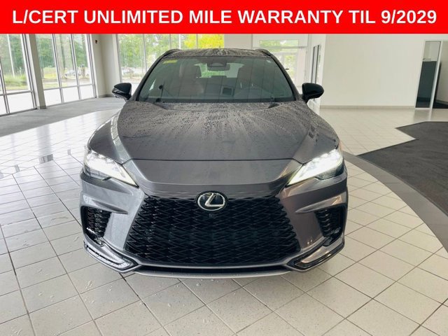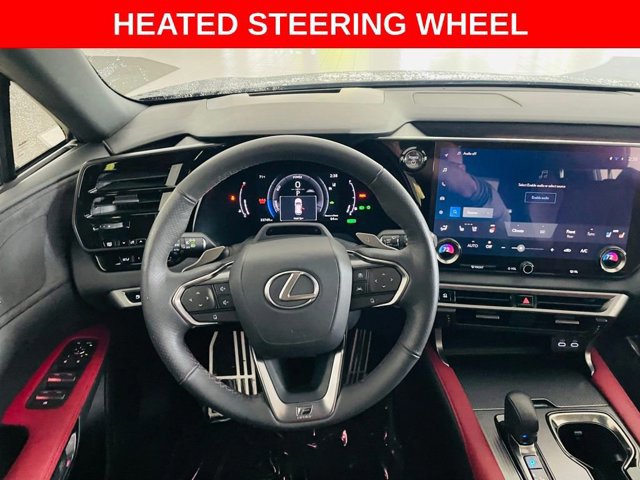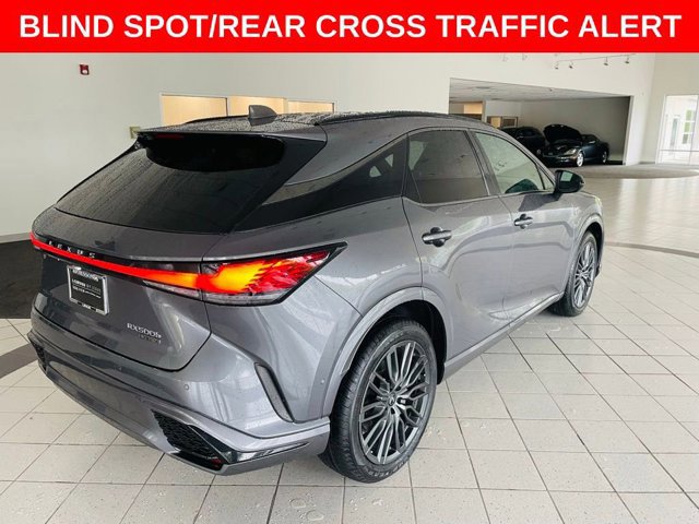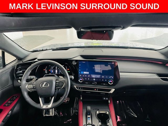THIS 2023 LEXUS RX 500H F SPORT IS FULLY LOADED WITH PANORAMIC SUNROOF, MARK LEVINSON SYSTEM, 360 SURROUND CAMERA, HEAD-UP DISPLAY, 14-IN DISPLAY WITH CLOUD NAVIGATION, PREMIUM TRIPLE-BEAM LED HEADLAMPS, HEATED AND VENTILATED REAR SEATS, CONVENIENCE PACKAGE, ADVANCED PARK, TRAFFIC JAM ASSIST, TECH PACKAGE, DIGITAL KEY, DIGITAL REARVIEW MIRROR, COLD AREA PACKAGE, WINDSHIELD WIPER DE-ICER, HEATED STEERING WHEEL, POWER REAR DOOR WITH KICK SENSOR, 21-INCH PREMIUM WHEELS, F SPORT FEATURES INCLUDE, ADAPTIVE VARIABLE SUSPENSION, WIRELESS PHONE CHARGER, HEAD-UP DISPLAY, LEATHER-TRIMMED HEATED/VENTILATED POWER FRONT SEATS WITH DRIVER SEAT MEMORY, THEMATIC AMBIENT ILLUMINATION, DYNAMIC REAR STEERING, Lexus Safety System+ 3.0: Lane Tracing Assist, Road Sign Assist, Pre-Collision System w/ Pedestrian Detection, Dynamic Radar Cruise Control w/ Curve Speed Management, Lane Departure Alert w/ Steering Assist, Intelligent High Beam Headlamps Blind Spot Monitor w/ Rear Cross Traffic Alert, Digital Latch with Safe Exit Assist and more!
