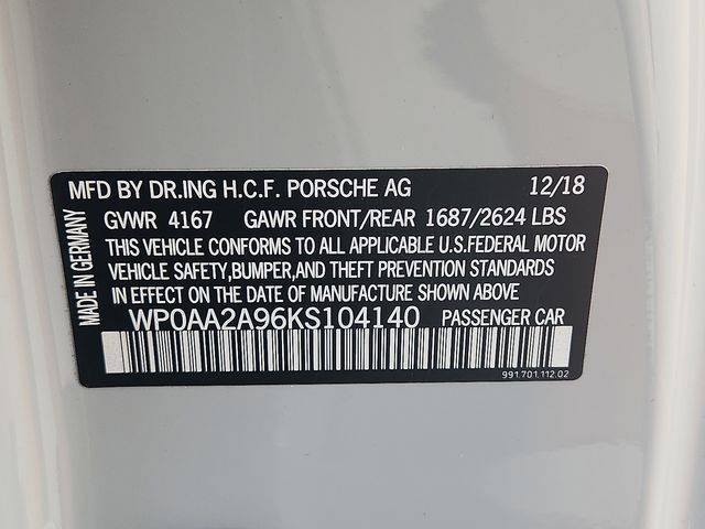 Chalk 2019 Porsche 911 Carrera RWD 7-Speed Porsche Doppelkupplung (PDK) 3.0L H6 Turbocharged DOHC 24V LEV3-LEV160 370hp