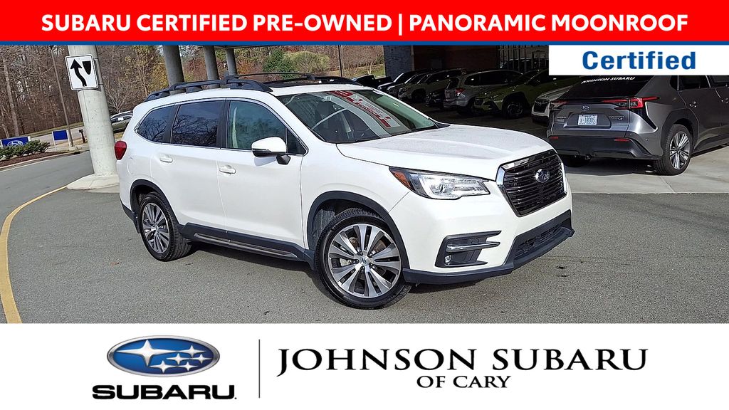 Certified. Crystal White Pearl 2022 Subaru Ascent Limited AWD Lineartronic CVT 2.4L 4-Cylinder DOHC 16V SUBARU CERTIFIED PRE-OWNED, PANORAMIC MOONROOF, NAVIGATION, EYE SIGHT TECHNOLOGY, LANE KEEP, REAR CROSS TRAFFIC ALERT, BLIND SPOT TECHNOLOGY, ADAPTIVE CRUISE CONTROL, POWER REAR TAIL GATE, APPLE CAR PLAY!, PUSH BUTTON START, HEATED LEATHER SEATS, HEATED FRONT AND REAR SEATS, HEATED STEERING WHEEL, H4, AWD, BACKUP CAMERA, BLUETOOTH, 60K SERVICE DONE.