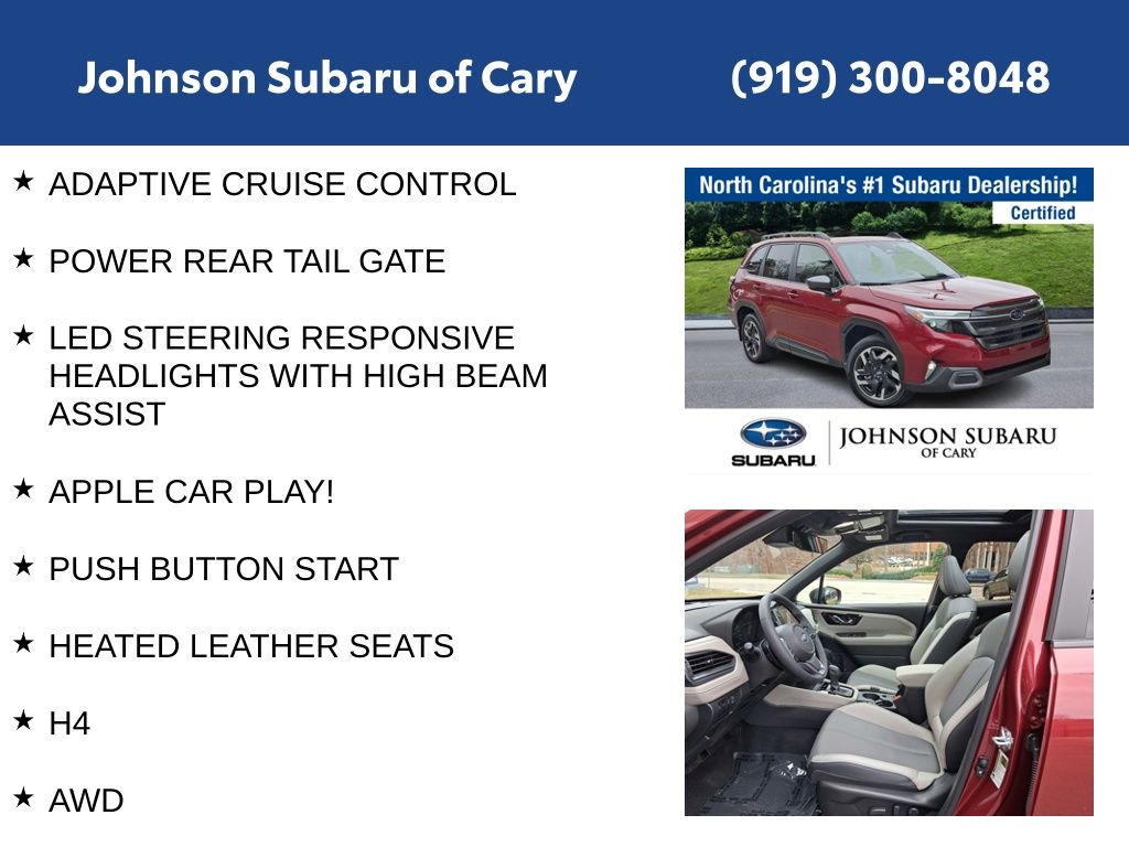 Discover the perfect blend of style, technology, and capability in this 2025 Subaru Forester Hybrid Limited. Schedule a test drive today and experience the difference for yourself.