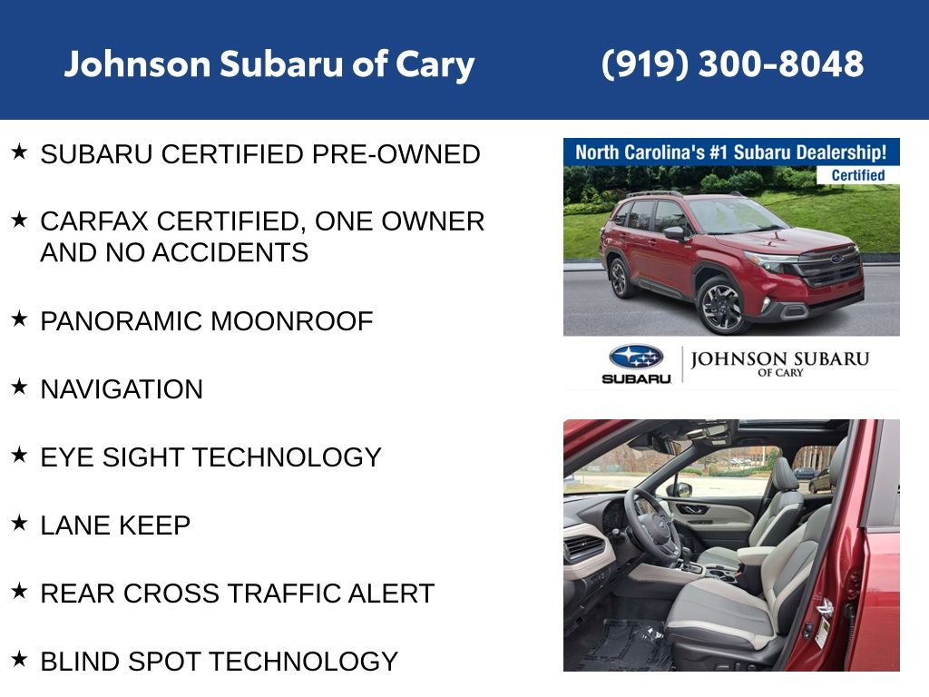 Discover the perfect blend of power, efficiency, and advanced technology in this stunning 2025 Subaru Forester Hybrid Limited. With its sleek Daybreak Blue Pearl exterior and a host of premium features, this certified pre-owned Forester is ready to elevate your driving experience.