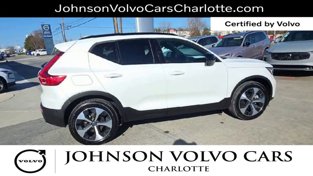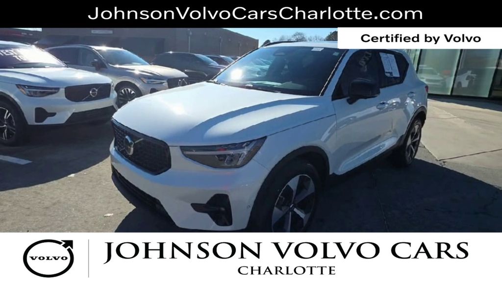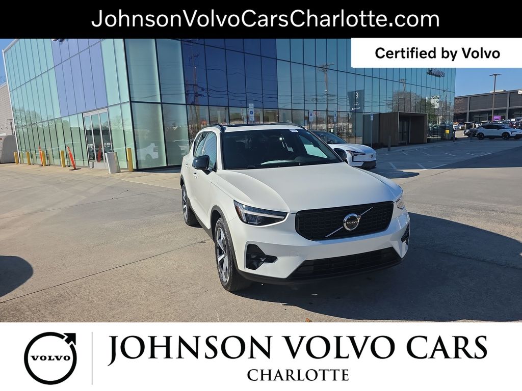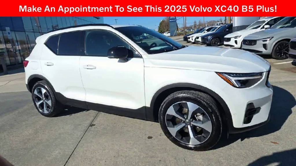 Certified. CARFAX One-Owner. Crystal White Pearl 2025 Volvo XC40 B5 Plus Dark Theme AWD