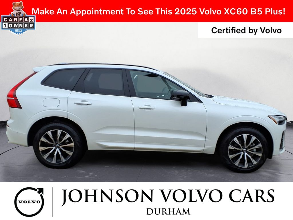 Certified. Crystal White Metallic 2025 Volvo XC60 B5 Plus AWD Automatic with Geartronic 2.0L I4 Turbocharged DOHC 16V LEV3-ULEV70 AWD.