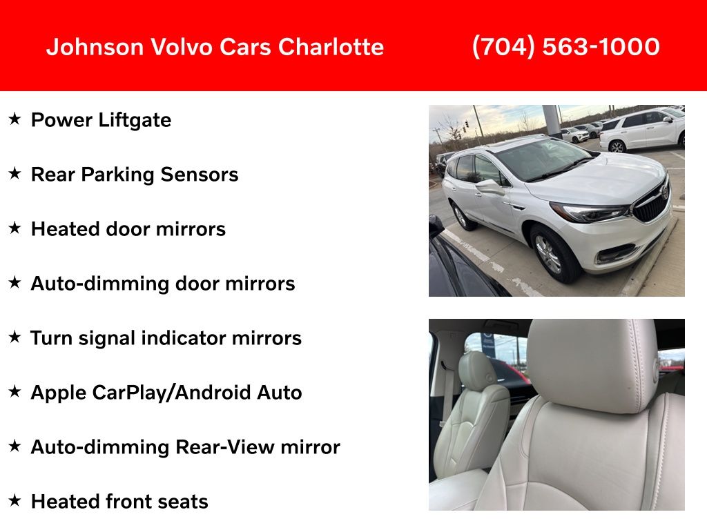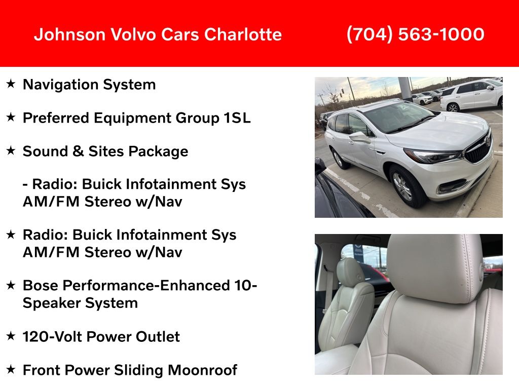 FWD, 120-Volt Power Outlet, 18" Painted Aluminum Wheels, 3rd row seats: split-bench, Apple CarPlay/Android Auto, Auto-dimming door mirrors, Auto-dimming Rear-View mirror, Bose Performance-Enhanced 10-Speaker System, Front Power Sliding Moonroof, Heated door mirrors, Heated front seats, Navigation System, Power Liftgate, Preferred Equipment Group 1SL, Radio: Buick Infotainment Sys AM/FM Stereo w/Nav, Rear Parking Sensors, Sound & Sites Package, Turn signal indicator mirrors.