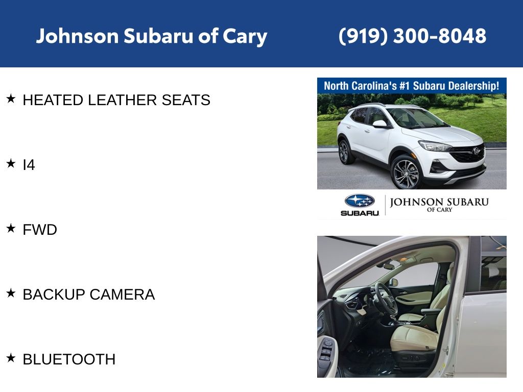 Summit White 2021 Buick Encore GX Select FWD CVT ECOTEC 1.2L Turbo CARFAX NO ACCIDENTS, LANE KEEP, BLIND SPOT TECHNOLOGY, ADAPTIVE CRUISE CONTROL, POWER REAR TAIL GATE, APPLE CAR PLAY!, PUSH BUTTON START, HEATED FRONT SEATS, HEATED LEATHER SEATS, I4, FWD, BACKUP CAMERA, BLUETOOTH.
