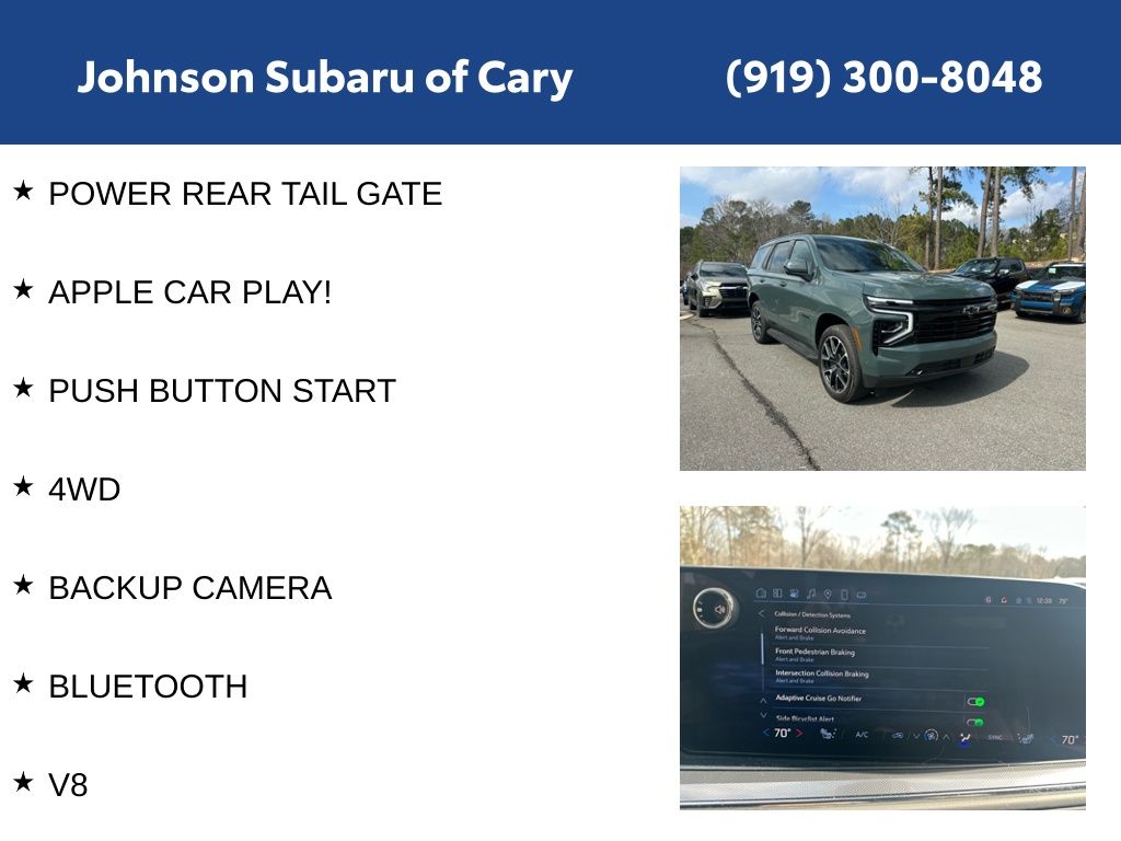 This 2025 Chevrolet Tahoe RST is a true standout in its class, blending exceptional performance, capability, and style. With its low mileage of just 9,530 and a comprehensive list of premium features, this SUV is an exceptional value. Experience the difference for yourself and schedule a test drive today. We're confident you'll be impressed by the Tahoe's impressive capabilities and refined, luxurious presence.