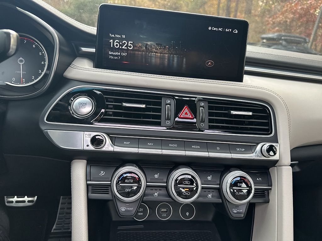 *Sport Prestige Package: 19-inch Sport Alloy Wheels Leather Seating Surfaces Dark Chrome Grille & Daylight Opening Trim Sport Aluminum Trim Wide Sunroof Lexicon Premium Audio Ventilated Front Seats Parking Distance Warning - Forward & Reverse Rain-Sensing Wipers Wireless Device Charging Power-folding ECM Outside Mirrors w/ Genesis Logo Puddle Lamps