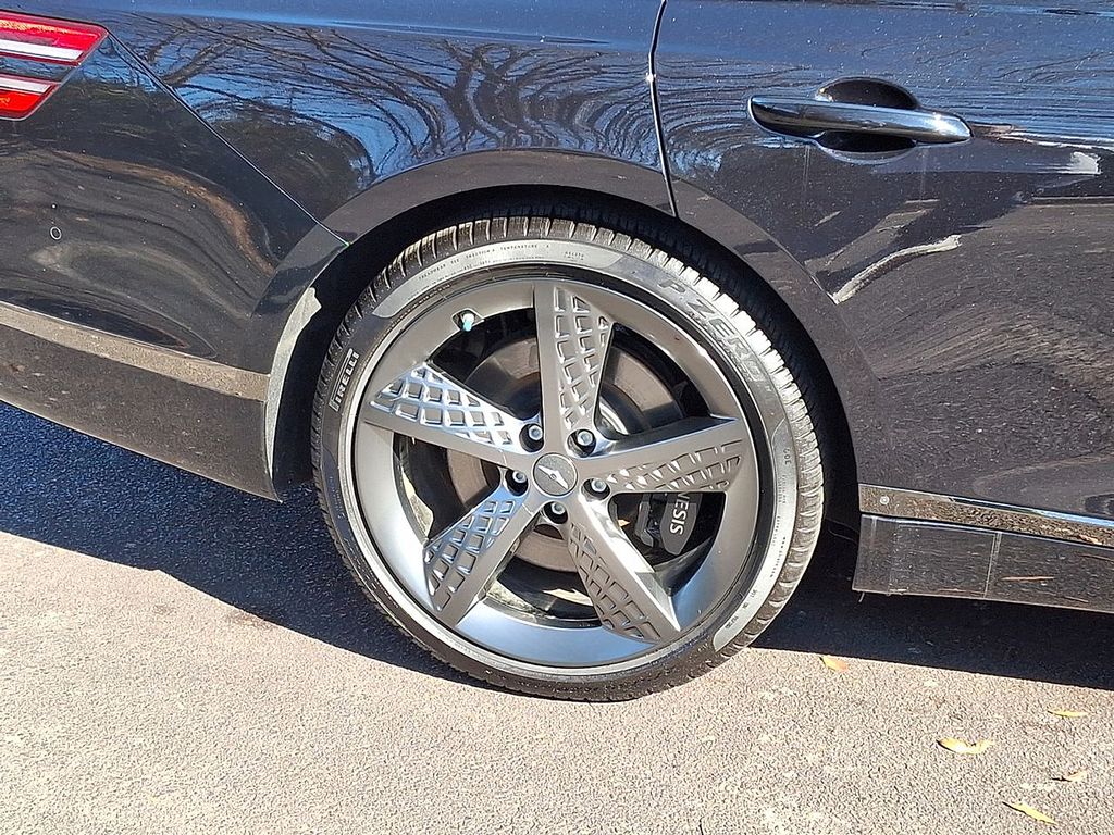 Equipped with: Heated & Ventilated Nappa Leather Front Seats, Heated Power Tilt & Telescoping Steering Wheel, Power Cushion Extension, Bolster, and Ergo Motion w/ Massage (Driver), Microfiber Suede Headliner & Pillars, Carbon Fiber Trim, 12.3" 3D Digital Instrument Cluster, Head-Up Display, Remote Smart Parking Assist, Smart Cruise Control, Intelligent Speed Limit Assist, Highway Driving Assist, Panoramic Sunroof, Power Hands-Free Smart Trunk w/ Auto Open, Power-folding ECM Outside Mirrors w/ Genesis Logo Puddle Lamps, High Beam Assist, Surround View Monitor Blind-Spot View Monitor, Advanced Rear Occupant Alert, Power Rear Sunshade, Lexicon Premium Audio, Wireless Phone Charger, 14.5" Navigation System w/ AM/FM/HD Radio.