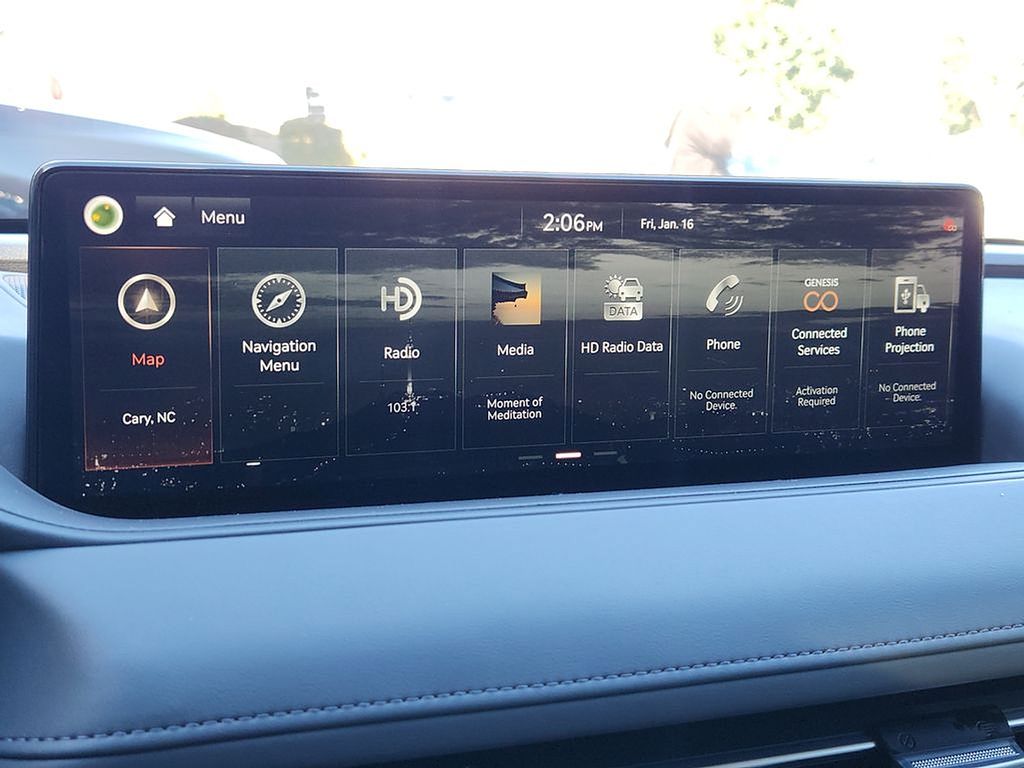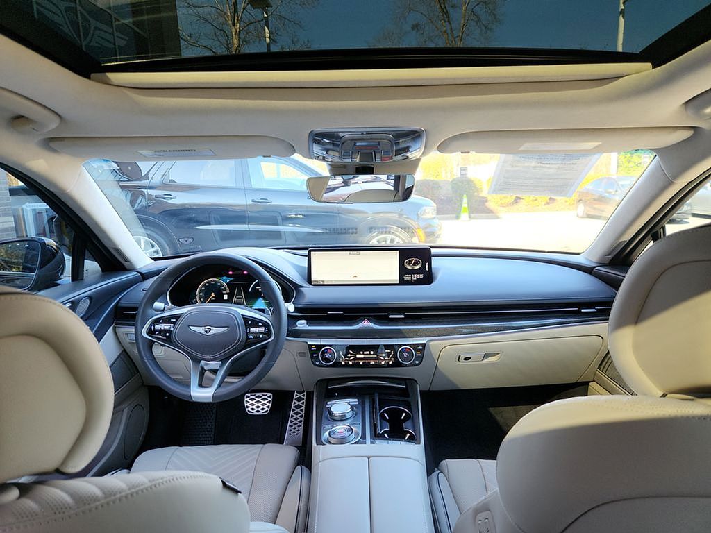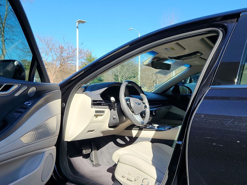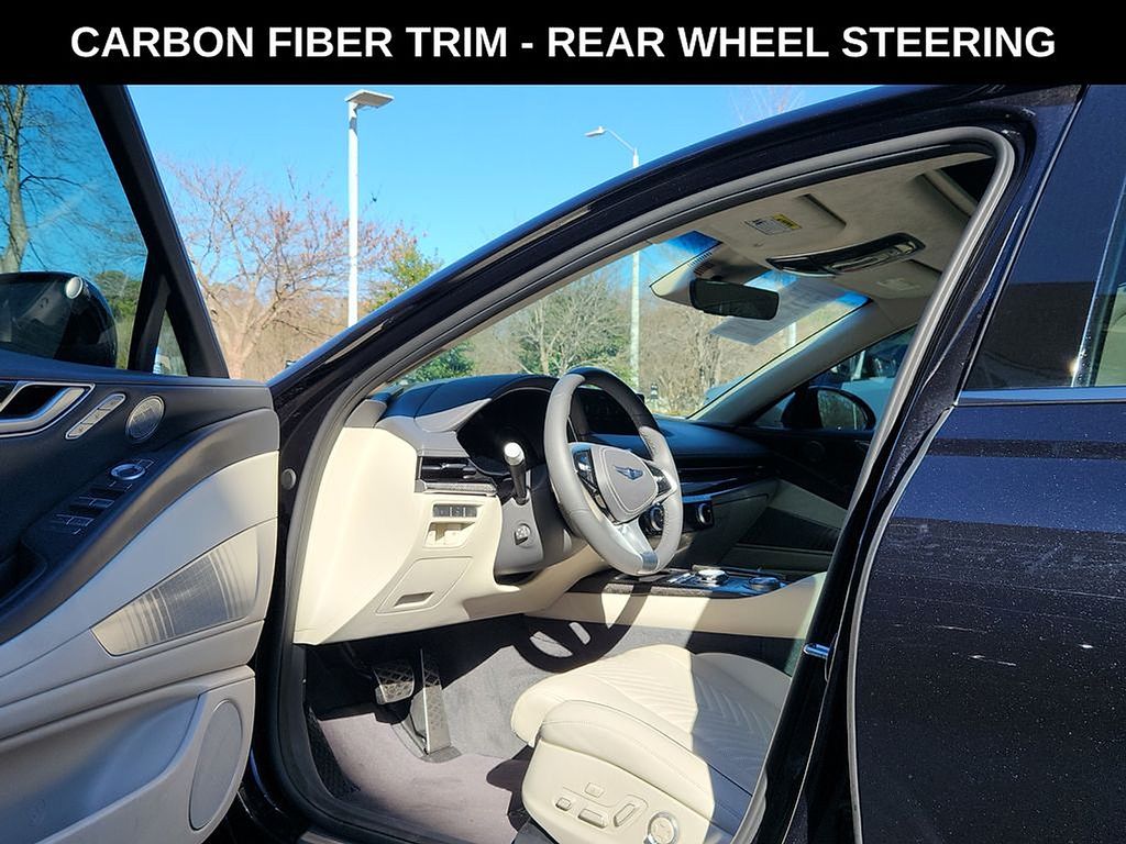 Equipped with: Heated & Ventilated Nappa Leather Front Seats, Heated Power Tilt & Telescoping Steering Wheel, Power Cushion Extension, Bolster, and Ergo Motion w/ Massage (Driver), Microfiber Suede Headliner & Pillars, Carbon Fiber Trim, 12.3" 3D Digital Instrument Cluster, Head-Up Display, Remote Smart Parking Assist, Smart Cruise Control, Intelligent Speed Limit Assist, Highway Driving Assist, Panoramic Sunroof, Power Hands-Free Smart Trunk w/ Auto Open, Power-folding ECM Outside Mirrors w/ Genesis Logo Puddle Lamps, High Beam Assist, Surround View Monitor Blind-Spot View Monitor, Advanced Rear Occupant Alert, Power Rear Sunshade, Lexicon Premium Audio, Wireless Phone Charger, 14.5" Navigation System w/ AM/FM/HD Radio.