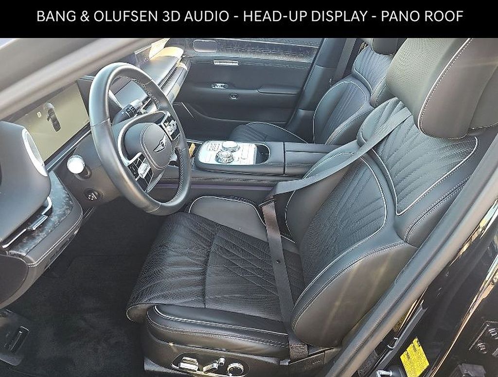 Genesis Certified!! Vik Black 2024 Genesis G90 3.5T e-SC AWD 8-Speed Automatic V6. Equipped with: Power Front and Rear Seats w/ Massage Function, Front Seat Power Bolsters, Heated & Ventilated Front & Rear Seats, Heated Power Tilt & Telescopic Steering Wheel, 3-Zone Climate Control, Mood Curator, Power Rear & Rear Side Sunshades Panoramic Sunroof, Rear-wheel Steering, Nappa Leather Seating Surfaces, Leatherette Wrapped Upper Instrument Panel, Microfiber Suede Headliner & Pillars, Apple CarPlayTM & Android AutoTM, Bang & Olufsen 3D Premium Audio, Head-Up Display, Active Noise Control - Road, Wireless Device Charger - Front & Rear, Fingerprint Authentication System, Navigation System w/ 12.3" HD Screen, 12.3" Digital Instrument Cluster, Easy Close Power Door, Power Hands-Free Smart Trunk w/ Auto Open, Power-folding ECM Outside Mirrors w/ Genesis Logo Puddle Lamps, Forward Collision-Avoidance Assist, Lane Keeping Assist / Lane Following Assist, Blind-Spot Collision-Avoidance Assist, Blind-Spot View Monitor, Rear Cross-Traffic Collision-Avoidance Assist, Highway Driving Assist II, Smart Cruise Control w/ Stop & Go, Intelligent Speed Limit Assist, Driver Attention Warning / High Beam Assist, Rearview Camera w/Dynamic Guidelines, Surround View Monitor, Parking Distance Warning, Parking Collision-Avoidance Assist, Remote Smart Parking Assist, Safe Exit Assist, Advanced Rear Occupant Alert.