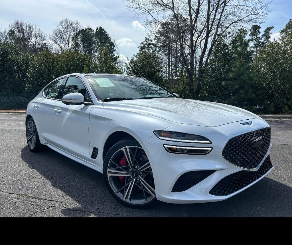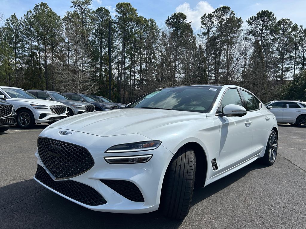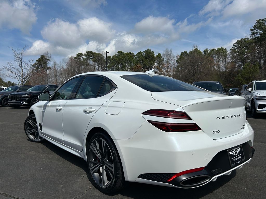Uyuni White/ Black 2025 Genesis G70 3.3L Twin Turbo V6 (365 HP / 376 lb.-ft) SPORT PRESTIGE RWD 8-Speed Automatic.