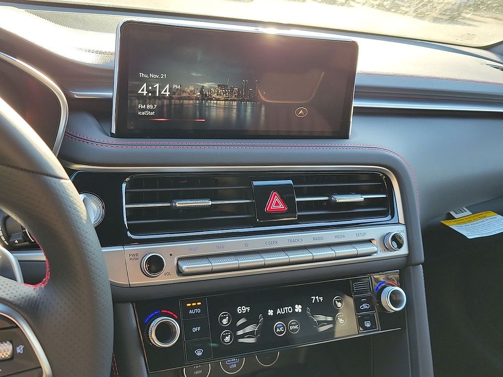 Equipped with: Heated & Cooled Seats, Leather Seating Surfaces, Leatherette Wrapped Lower Instrument Panel, Integrated Memory System, Brembo Braking System, 10.25" Navigation System, Apple CarPlay and Android AutoTM, Lexicon Premium Audio, Wireless Phone Charger, Smart Cruise Control, Intelligent Speed Limit Assist, Highway Driving Assist, Forward Collision-Avoidance Assist, Lane Keeping Assist, Lane Following Assist, Driver Attention Warning, Blind-Spot Collision Warning, Rear Cross-Traffic Collision-Avoidance Assist, Rearview Camera, Safe Exit Warning, Rear Occupant Alert, Parking Distance Warning - Forward & Reverse, Power-folding ECM Outside Mirrors w/ Genesis Logo Puddle Lamps, 19-inch Sport Alloy Wheels, Dark Chrome Grille & Daylight Opening Trim, Sport Aluminum Trim.