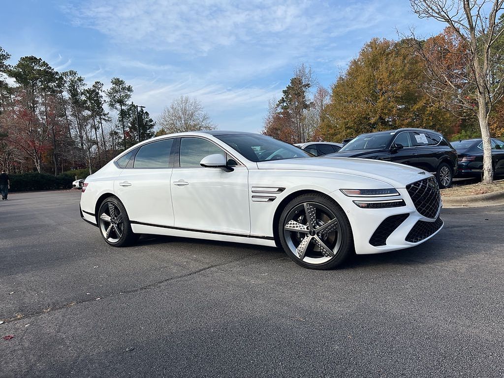 Alta White 2025 Genesis G80 2.5T Sport Prestige AWD 8-Speed Automatic I4