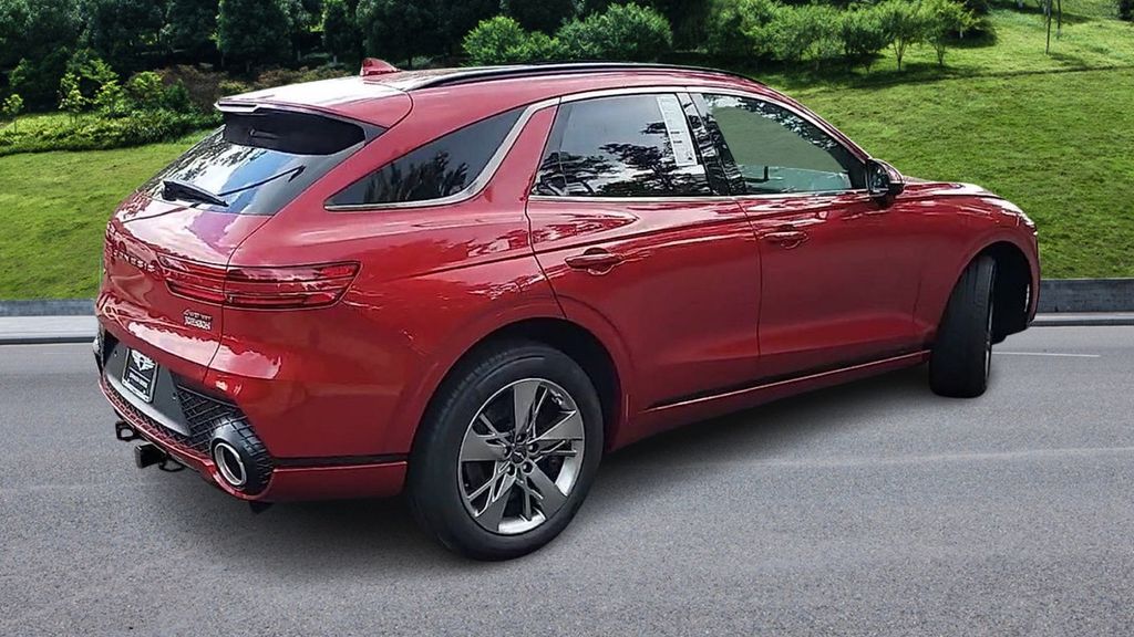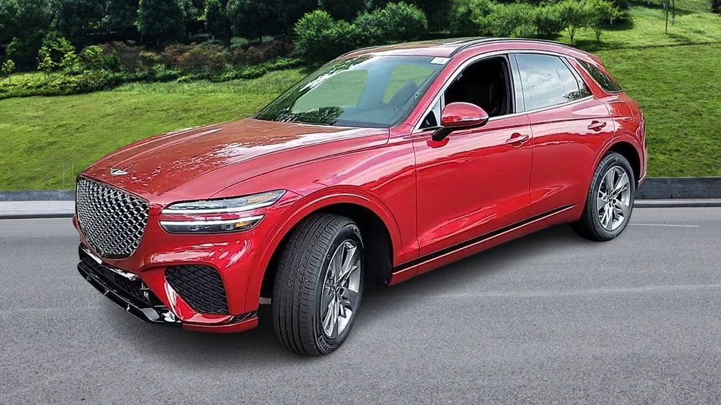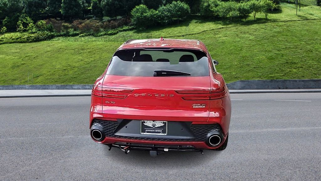 Mauna Red 2025 Genesis GV70 Sport 3.5 V6 Twin-Turbo AWD (375 HP / 391 lb.-ft) with -ft) with 8-speed Automatic Transmission and Electronically Controlled Suspension w/ Road Preview.