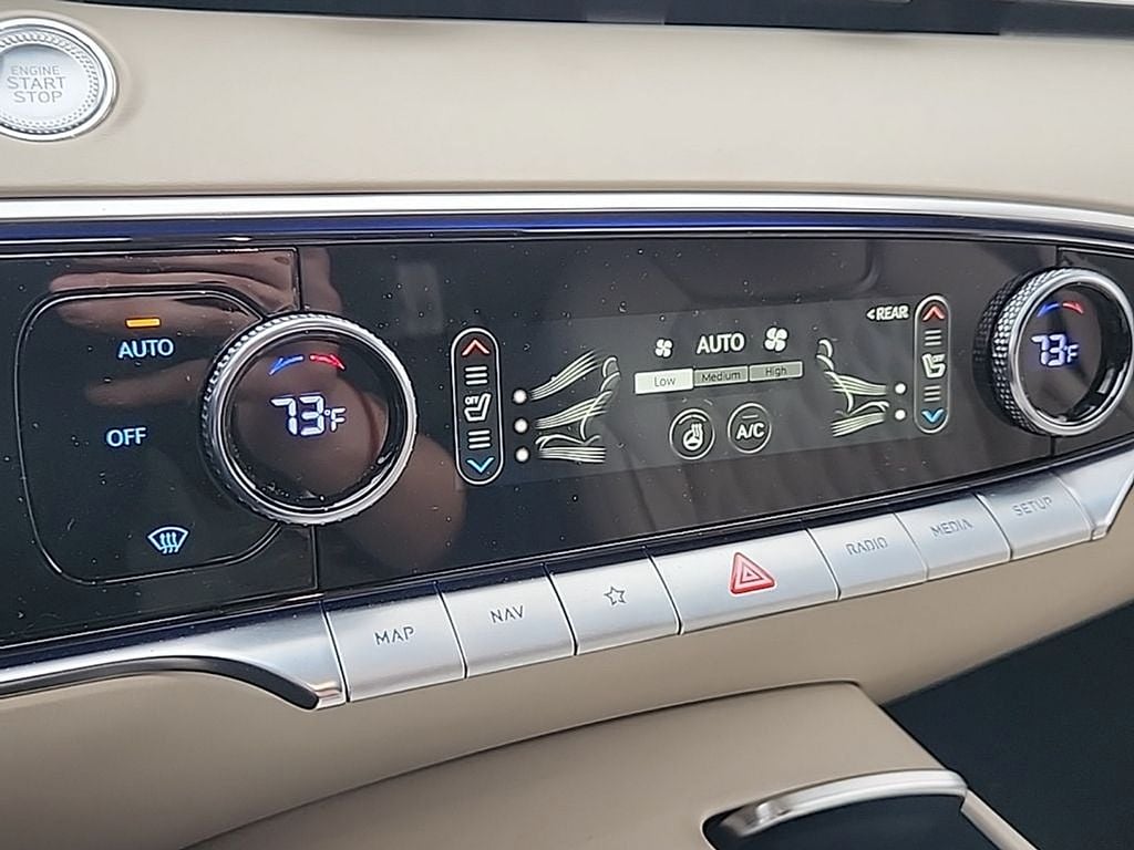 Equipped with: Heated & Cooled Seats, Heated Steering Wheel, Power Cushion Extension, Massage, Bolster & Ergo Motion (Driver Seat), Nappa Leather Seating Surfaces, Leatherette Wrapped Upper Instrument Panel, Microfiber Suede Headliner, Lexicon Premium Audio, Highway Driving Assist, Surround View Monitor / Blind-Spot View Monitor, Remote Smart Parking Assist, Parking Distance Warning - Forward / Reverse, Parking Collision Avoidance Assist - Reverse, 14.5" Navigation System w/AM/FM/HD Radio, Apple CarPlayTM & Android AutoTM, Wireless Phone Charger, Fingerprint Authentication System, Panoramic Sunroof, Power Hands-Free Smart Liftgate w/ Auto Open, Power Folding ECM Mirrors w/ Genesis Logo, High Beam Assist, 21-inch Sport Alloy Wheels.