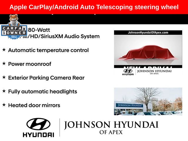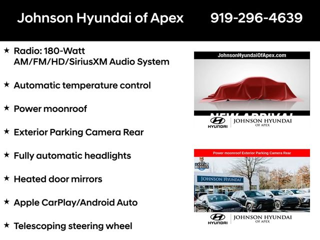 Apple CarPlay/Android Auto, Automatic temperature control, Exterior Parking Camera Rear, Fully automatic headlights, Heated door mirrors, Power moonroof, Radio: 180-Watt AM/FM/HD/SiriusXM Audio System, Reclining Front Bucket Seats, Telescoping steering wheel.