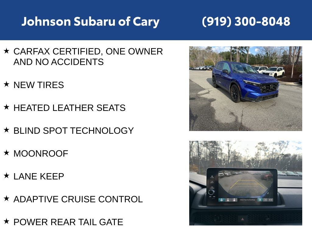 Elevate your driving experience with the CR-V Hybrid's impressive list of features, including a power liftgate, heated front seats, a moonroof, and a rear-view camera. Enjoy the convenience of push-button start and the added peace of mind that comes with the Carfax certified, one-owner, and accident-free history.