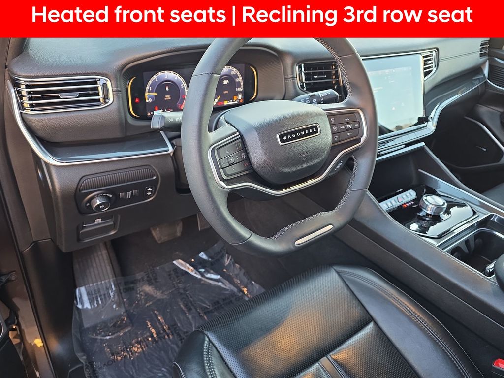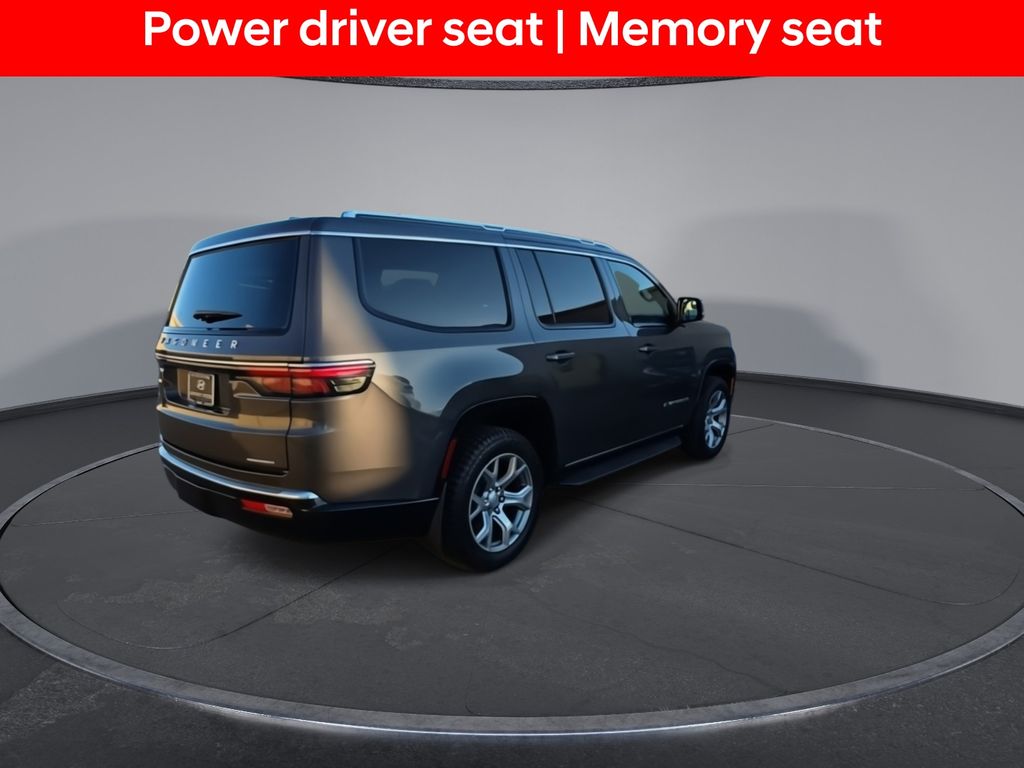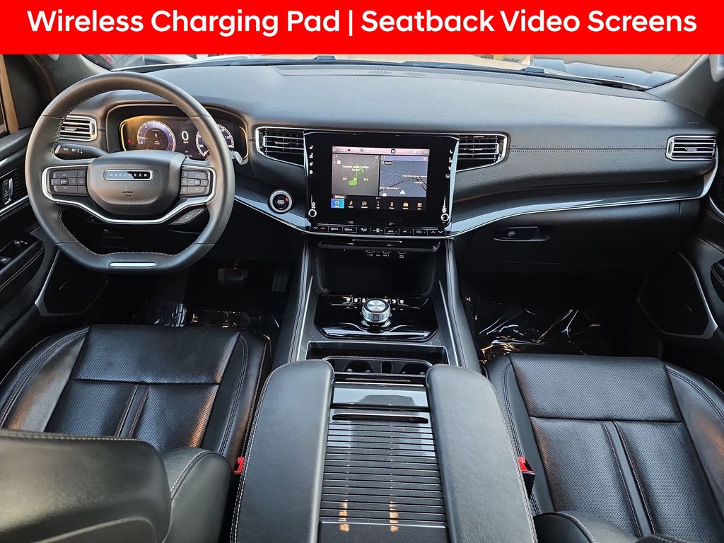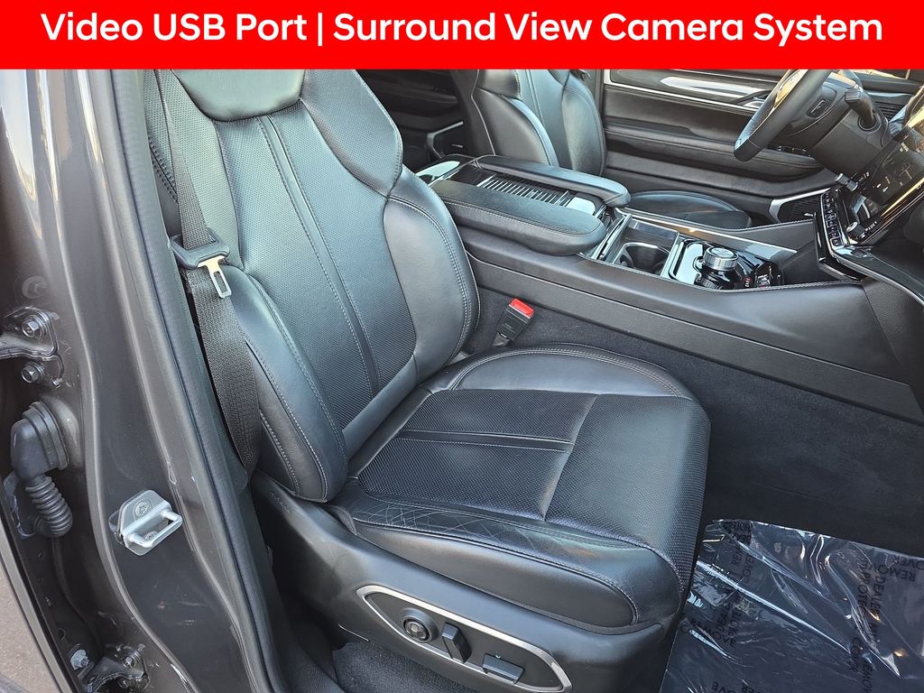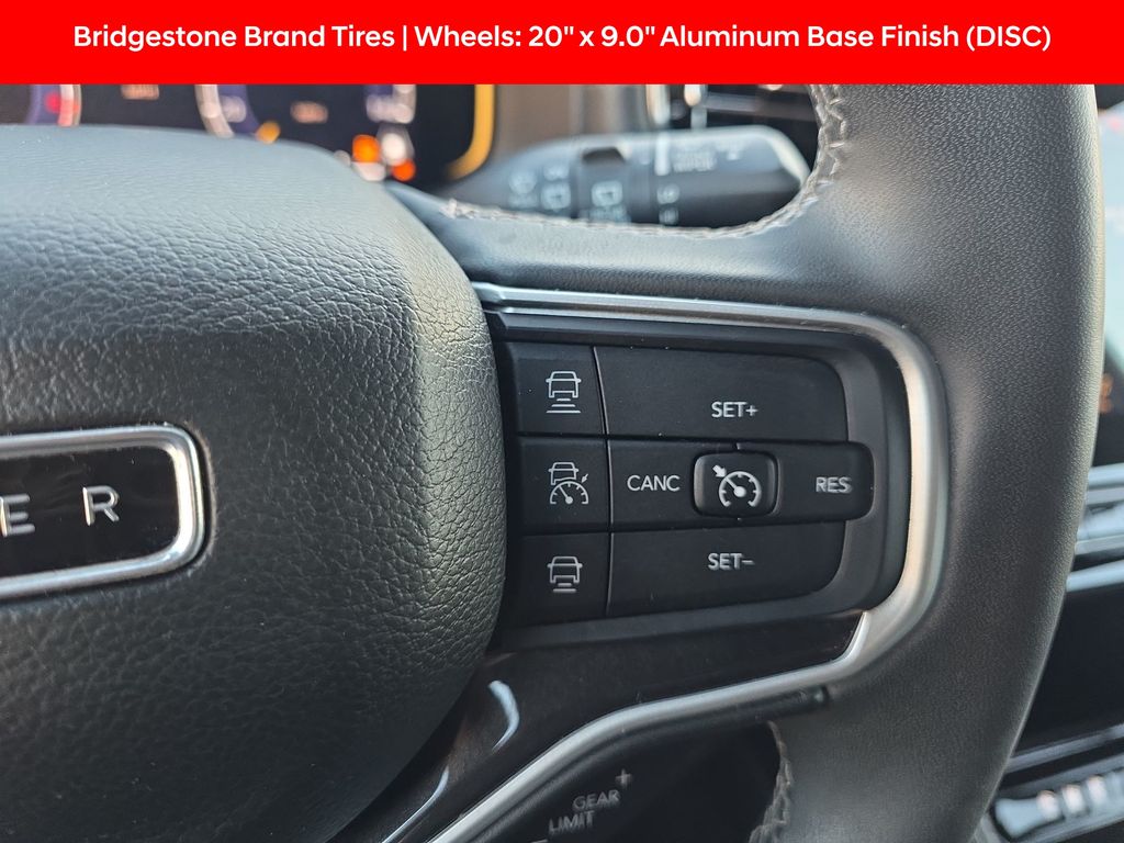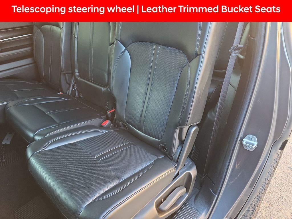 2nd Row Manual Window Shades, 3 Panel Sunroof, Active Lane Management System, Adaptive Cruise Control w/Stop & Go, Adjustable pedals, Adjustable Roof Rail Crossbars, AM/FM radio: SiriusXM with 360L, Amazon Fire TV Built-In, Auto High Beam Headlamp Control, Auto-dimming door mirrors, Auto-dimming Rear-View mirror, Auto-leveling suspension, Automatic temperature control, Bridgestone Brand Tires, Cargo Cover, Convenience Group I, Exterior Parking Camera Rear, Front dual zone A/C, Front fog lights, Fully automatic headlights, Garage door transmitter, Heated door mirrors, Heated front seats, Heated Second Row Seats, Heated steering wheel, Leather Trimmed Bucket Seats, Memory seat, Memory Steering Column, Navigation System, Outside temperature display, P&P Park & Unpark Assist w/Stop System, Pedal memory, Power adjustable front head restraints, Power driver seat, Power Liftgate, Power passenger seat, Premium Group I (DISC), Quick Order Package 22E, Radio: Uconnect 5 Nav w/10.1" Display, Rain Sensitive Windshield Wipers, Rear air conditioning, Rear dual zone A/C, Rear Seat Video Group 1, Reclining 3rd row seat, Reversible Carpet/Vinyl Cargo Mat, Seatback Video Screens, Steering wheel memory, Surround View Camera System, Telescoping steering wheel, Ventilated front seats, Video USB Port, Wheels: 20" x 9.0" Aluminum Base Finish (DISC), Wireless Charging Pad, 10 Speakers, 3.21 Rear Axle Ratio, 3rd row seats: bench, 4-Wheel Disc Brakes, ABS brakes, Air Conditioning, Alloy wheels, Anti-whiplash front head restraints, Audio memory, Brake assist, Bumpers: body-color, Compass, Delay-off headlights, Driver door bin, Driver vanity mirror, Driver's Seat Mounted Armrest, Dual front impact airbags, Dual front side impact airbags, Electronic Stability Control, Four wheel independent suspension, Front anti-roll bar, Front Bucket Seats, Front Center Armrest w/Storage, Front reading lights, Illuminated entry, Knee airbag, Low tire pressure warning, Normal Duty Suspension, Occupant sensing airbag, Overhead airbag, Overhead console, Panic alarm, Passenger door bin, Passenger seat mounted armrest, Passenger vanity mirror, Power door mirrors, Power steering, Power windows, Radio data system, Rear anti-roll bar, Rear reading lights, Rear seat center armrest, Rear window defroster, Rear window wiper, Remote keyless entry, Security system, Speed control, Speed-sensing steering, Speed-Sensitive Wipers, Split folding rear seat, Steering wheel mounted audio controls, Tachometer, Tilt steering wheel, Traction control, Trip computer, Turn signal indicator mirrors, Variably intermittent wipers, Voltmeter, Wheels: 18" x 8.0" Aluminum Base Finish, 2nd Row Manual Window Shades, 3 Panel Sunroof, Active Lane Management System, Adaptive Cruise Control w/Stop & Go, Adjustable pedals, Adjustable Roof Rail Crossbars, AM/FM radio: SiriusXM with 360L, Amazon Fire TV Built-In, Auto High Beam Headlamp Control, Auto-dimming door mirrors, Auto-dimming Rear-View mirror, Auto-leveling suspension, Automatic temperature control, Bridgestone Brand Tires, Cargo Cover, Convenience Group I, Exterior Parking Camera Rear, Front dual zone A/C, Front fog lights, Fully automatic headlights, Garage door transmitter, Heated door mirrors, Heated front seats, Heated Second Row Seats, Heated steering wheel, Leather Trimmed Bucket Seats, Memory seat, Memory Steering Column, Navigation System, Outside temperature display, P&P Park & Unpark Assist w/Stop System, Pedal memory, Power adjustable front head restraints, Power driver seat, Power Liftgate, Power passenger seat, Premium Group I (DISC), Quick Order Package 22E, Radio: Uconnect 5 Nav w/10.1" Display, Rain Sensitive Windshield Wipers, Rear air conditioning, Rear dual zone A/C, Rear Seat Video Group 1, Reclining 3rd row seat, Reversible Carpet/Vinyl Cargo Mat, Seatback Video Screens, Steering wheel memory, Surround View Camera System, Telescoping steeri