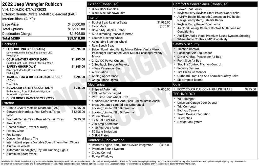 Granite Crystal Metallic Clearcoat 2022 Jeep Wrangler Rubicon 4WD 8-Speed Automatic 2.0L I4 DOHC