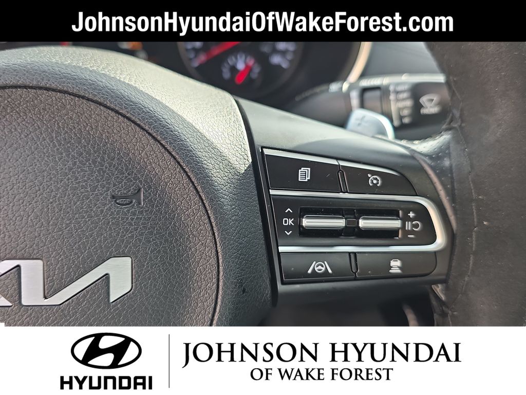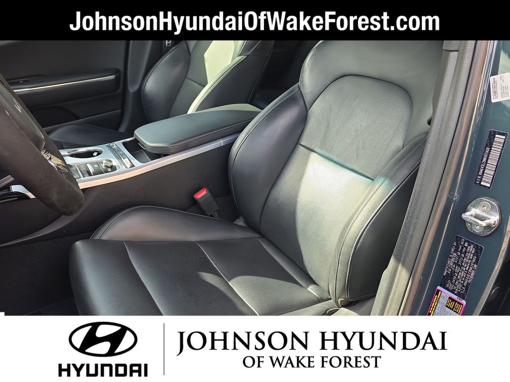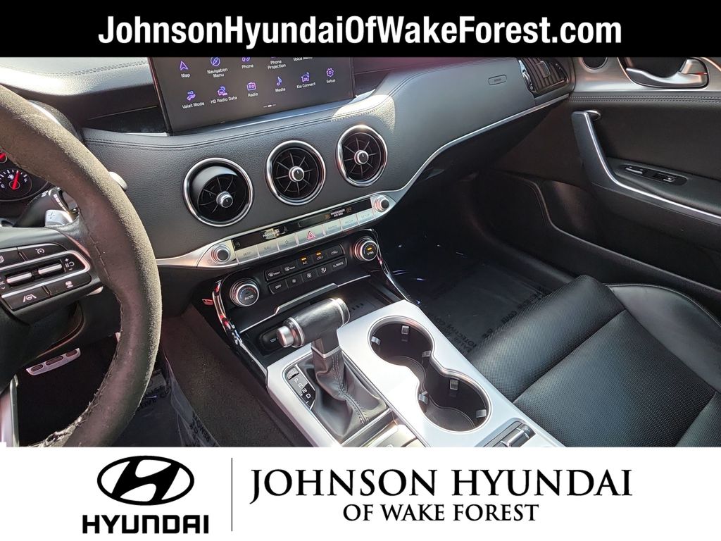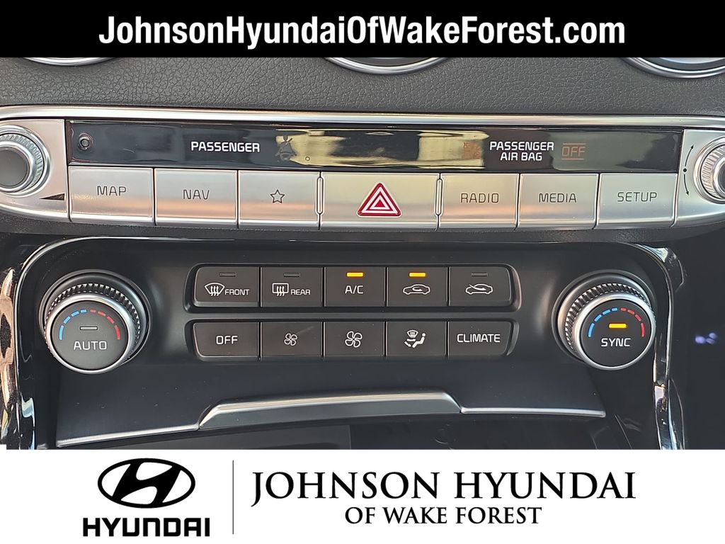 4-Wheel Disc Brakes, 9 Speakers, ABS brakes, Air Conditioning, Alloy wheels, AM/FM radio: SiriusXM, Anti-whiplash front head restraints, Apple CarPlay & Android Auto, Auto High-beam Headlights, Auto-dimming Rear-View mirror, Automatic temperature control, Brake assist, Bumpers: body-color, Delay-off headlights, Driver door bin, Driver vanity mirror, Dual front impact airbags, Dual front side impact airbags, Electronic Stability Control, Emergency communication system: UVO eServices, Exterior Parking Camera Rear, Four wheel independent suspension, Front anti-roll bar, Front Bucket Seats, Front Center Armrest, Front dual zone A/C, Front reading lights, Fully automatic headlights, harman/kardon® Speakers, Heated door mirrors, Heated Front Bucket Seats, Heated front seats, Heated steering wheel, Illuminated entry, Knee airbag, Leather Seat Trim, Low tire pressure warning, Navigation System, Occupant sensing airbag, Outside temperature display, Overhead airbag, Overhead console, Panic alarm, Passenger door bin, Passenger vanity mirror, Power door mirrors, Power driver seat, Power moonroof, Power passenger seat, Power steering, Power windows, Radio: AM/FM/HD Audio System, Rain sensing wipers, Rear air conditioning, Rear anti-roll bar, Rear reading lights, Rear seat center armrest, Rear window defroster, Remote keyless entry, Security system, Smart Key w/ Push Button and Remote Start, Speed control, Speed-sensing steering, Speed-Sensitive Wipers, Split folding rear seat, Sport steering wheel, Steering wheel mounted audio controls, Tachometer, Telescoping steering wheel, Tilt steering wheel, Traction control, Trip computer, Turn signal indicator mirrors, Variably intermittent wipers, Wheel Locks, Wheels: 8.0J x 19 Front/8.5J x 19 Rear Alloy.