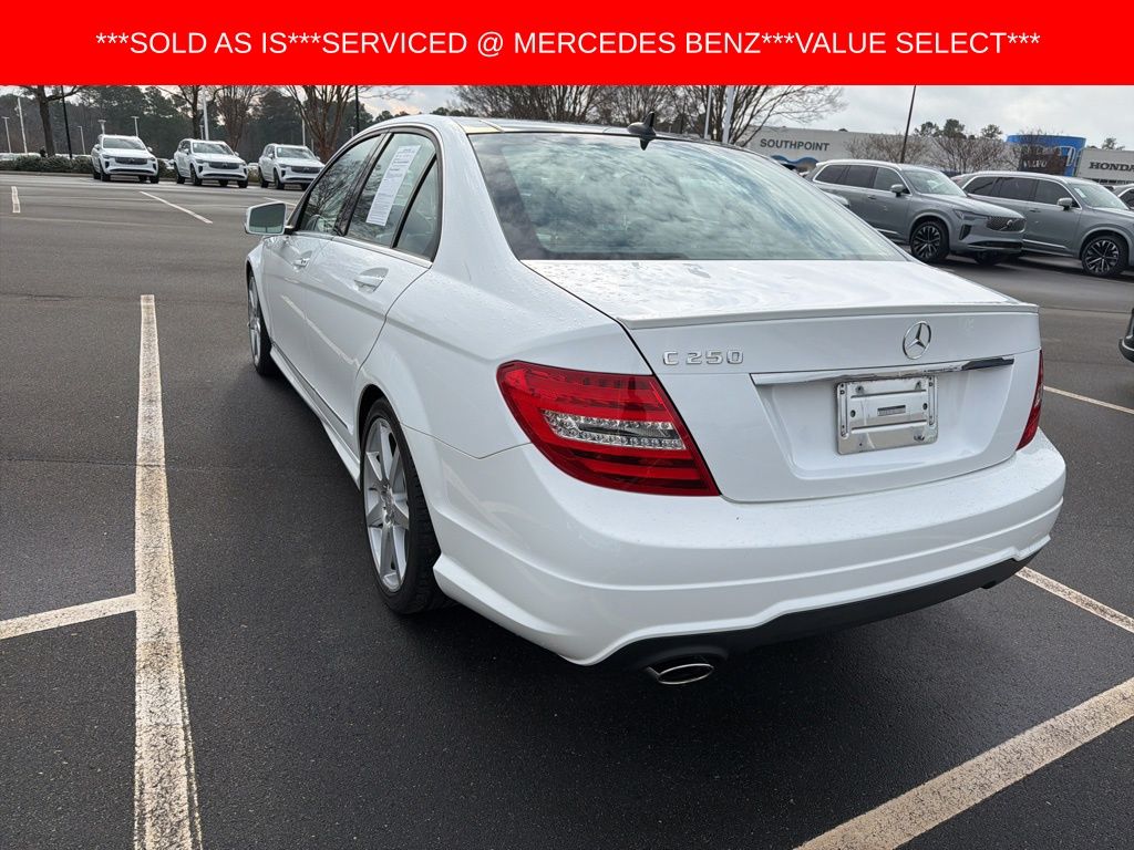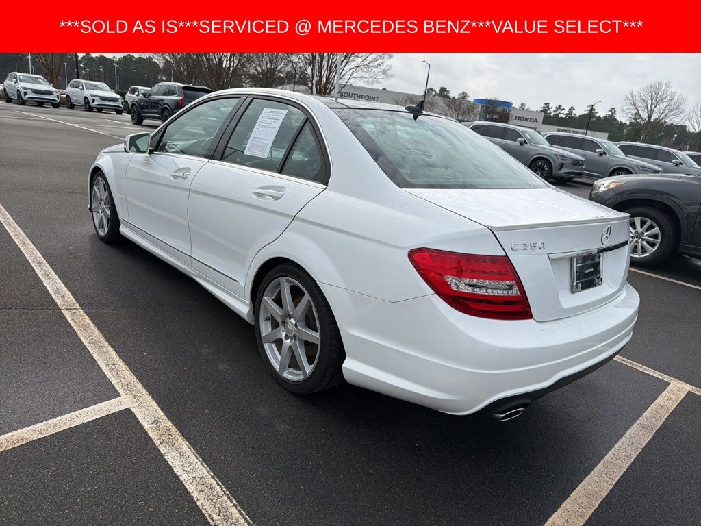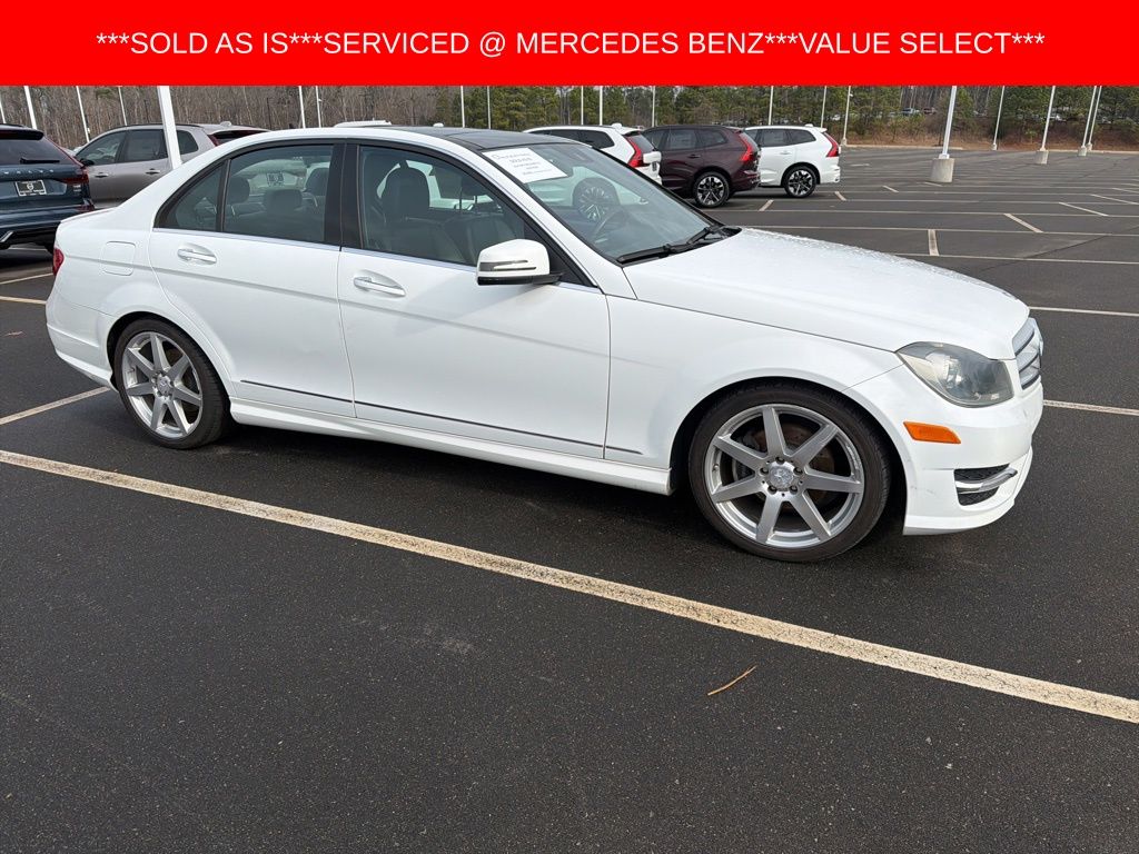 Polar White 2013 Mercedes-Benz C-Class C 250 RWD 7G-TRONIC PLUS 7-Speed Automatic 1.8L I4 DOHC 16V *This vehicle is a Johnson Volvo Cars Durham Value Select Vehicle. It is being sold as is due to age/mileage/condition. It has still passed North Carolina State Inspection, and has had an oil change in our service center. Please feel free to take the vehicle to your mechanic before purchase*, ***VEHICLE SOLD AS IS***PRICED TO SELL!!!***BUY BEFORE SENT TO AUCTION***NO WARRANTY INCLUDED***VEHICLE SOLD AS IS***, 4-Way Power Driver Lumbar Support, COMAND® System w/Hard-Drive Navigation, Driver's Seat Memory & Power Steering Column, Heated Front Seats, iPod/MP3 Media Interface Cable, iPod/MP3 Media Interface Package, Multimedia Package, Navigation System, Premium 1 Package, Radio: In-Dash 6-Disc DVD/CD Changer, SIRIUS Satellite Radio, Split Folding Rear Seats, Sport Package, Voice Control.