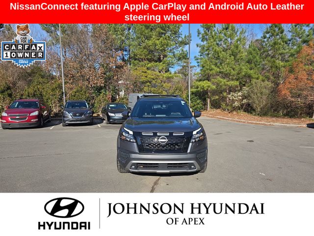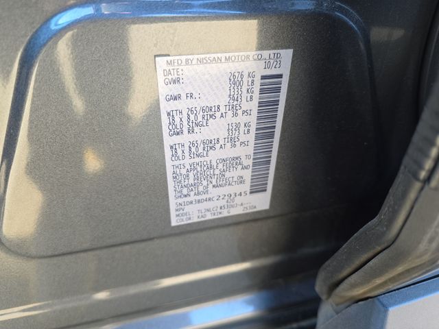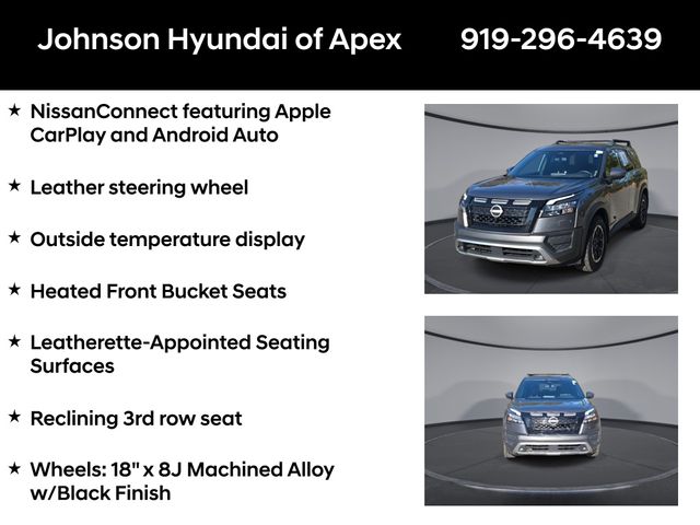 AM/FM radio: SiriusXM, Automatic temperature control, Emergency communication system, Front dual zone A/C, Front fog lights, Fully automatic headlights, Heated door mirrors, Heated Front Bucket Seats, Leather steering wheel, Leatherette-Appointed Seating Surfaces, NissanConnect featuring Apple CarPlay and Android Auto, Outside temperature display, Power door mirrors, Power driver seat, Radio: AM/FM Audio System w/NissanConnect, Rear air conditioning, Rear Parking Sensors, Reclining 3rd row seat, Rock Creek AS Floor Liners & Cargo Area Protector, Rock Creek Roof Rack, Steering wheel mounted audio controls, Telescoping steering wheel, Wheels: 18" x 8J Machined Alloy w/Black Finish.