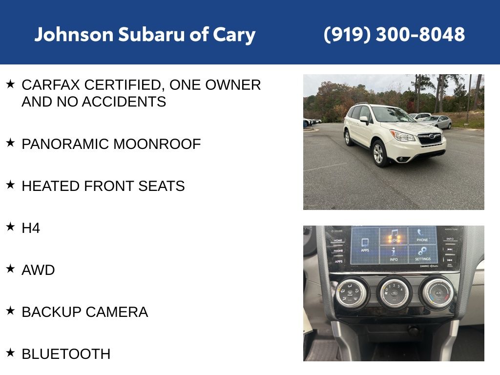 Whether you're seeking a versatile family hauler, an adventurous outdoor companion, or a premium daily driver, this 2016 Subaru Forester 2.5i Premium is an exceptional choice. With its impressive blend of features, performance, and safety, it's a vehicle that will exceed your expectations and enhance your driving experience. Visit our showroom today to take this Forester for a test drive and discover why it's the perfect fit for your lifestyle.