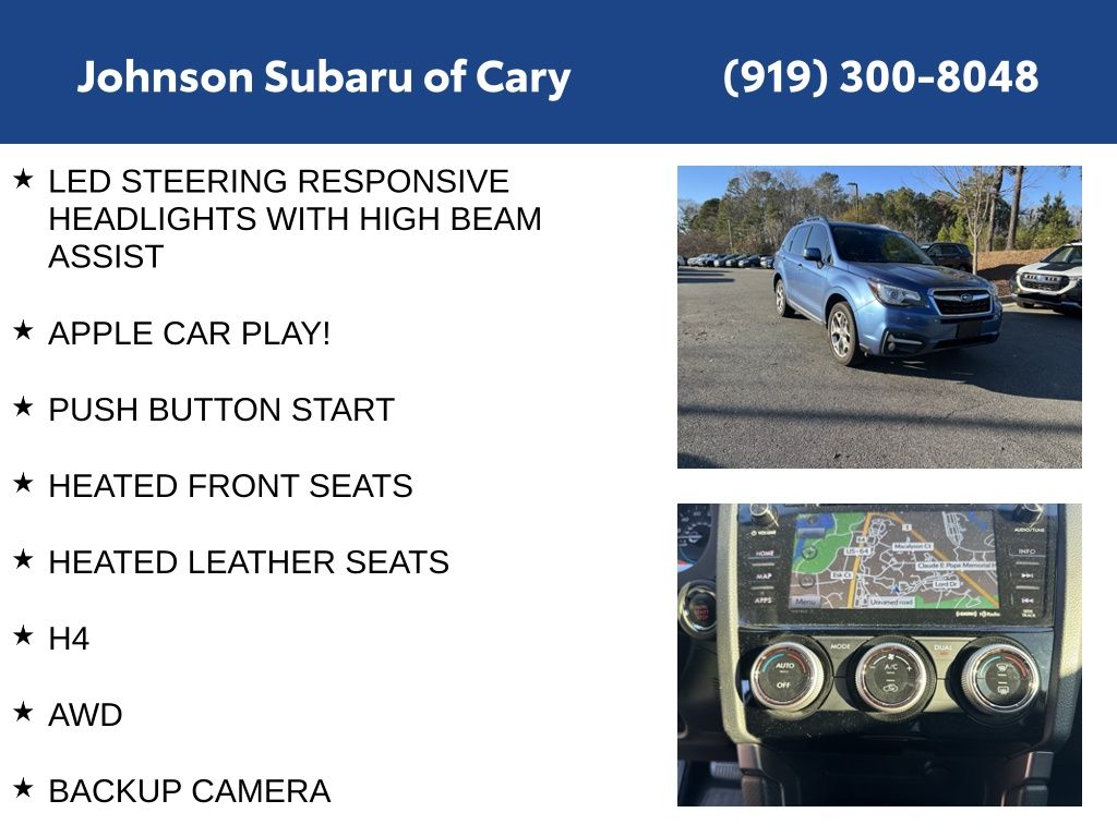 Powered by a 2.5L 4-cylinder DOHC engine and Lineartronic CVT, this Forester delivers an impressive 26 city / 32 highway MPG, making it an efficient and versatile choice. The Subaru Symmetrical All-Wheel-Drive system ensures confident handling in all conditions, whether navigating winding roads or tackling inclement weather.