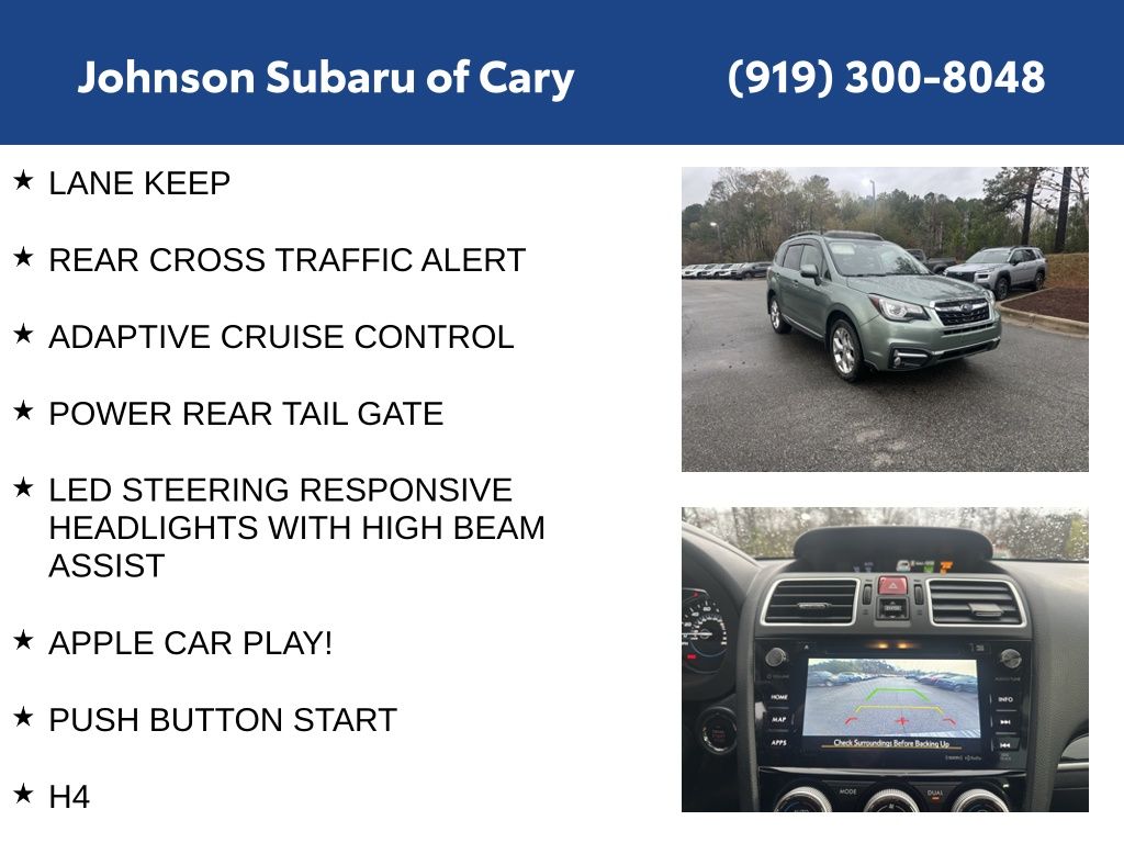 Experience the pinnacle of versatility and sophistication with this remarkable 2018 Subaru Forester 2.5i Touring. Boasting a sleek green exterior and a meticulously maintained interior, this one-owner, CARFAX-certified vehicle is the perfect blend of style, technology, and performance.