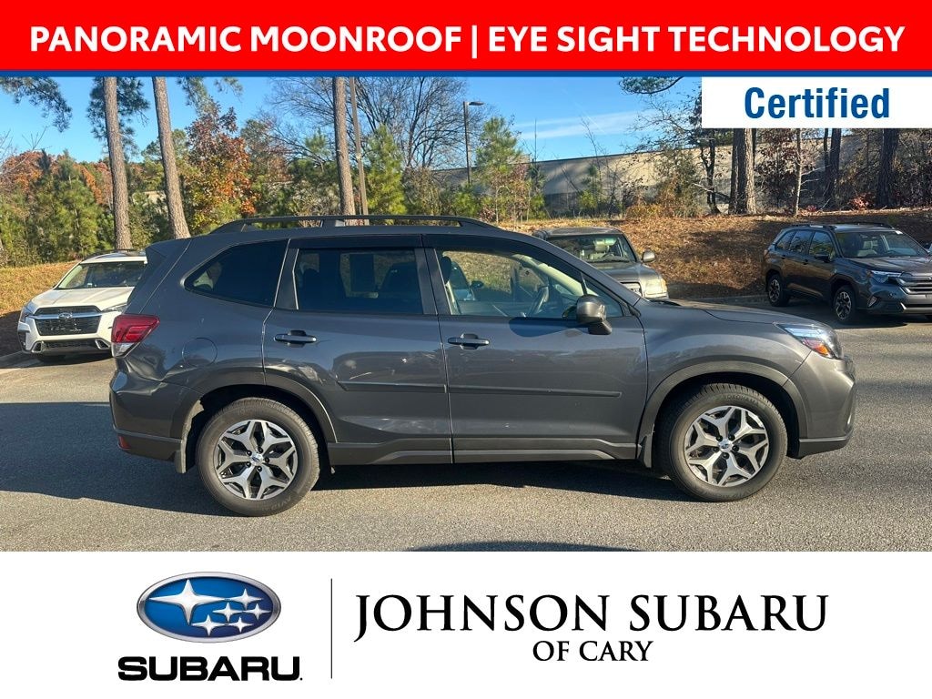 Certified. Magnetite Gray Metallic 2020 Subaru Forester Premium AWD Lineartronic CVT 2.5L 4-Cylinder DOHC 16V VVT SUBARU CERTIFIED PRE-OWNED, CARFAX CERTIFIED, ONE OWNER AND NO ACCIDENTS, PANORAMIC MOONROOF, EYE SIGHT TECHNOLOGY, LANE KEEP, REAR CROSS TRAFFIC ALERT, BLIND SPOT TECHNOLOGY, ADAPTIVE CRUISE CONTROL, APPLE CAR PLAY!, PUSH BUTTON START, HEATED FRONT SEATS, H4, AWD, BACKUP CAMERA, BLUETOOTH.