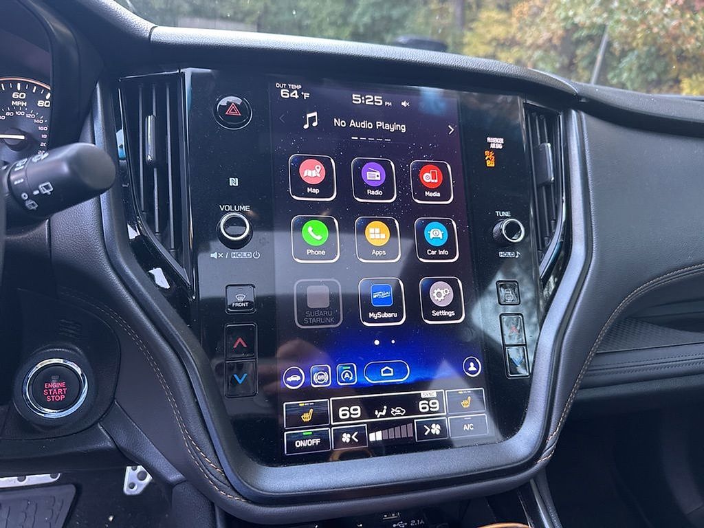 Power Moonroof & Navigation & RAB (Power Moonroof, Radio: Subaru STARLINK 11.6" Multimedia Nav System, and Reverse Automatic Braking (RAB) System), Wilderness Package (Auto-Dimming Exterior Mirror w/Approach Light, Cargo Sidewall Protector, Dome Light LED Upgrade, Rear Seat Back Protector, Splash Guards, and Wireless Charger), 6 Speakers, Alloy wheels, AM/FM radio: SiriusXM, Automatic temperature control, Exterior Parking Camera Rear, Front dual zone A/C, Fully automatic headlights, Heated Front Bucket Seats, Heated front seats, Heated rear seats, Leather steering wheel, Navigation System, Outside temperature display, Power driver seat, Power Liftgate, Power passenger seat, Remote keyless entry, StarTex-Trimmed Upholstery, Steering wheel mounted audio controls, and Trip computer. Recent Arrival! 22/26 City/Highway MPG