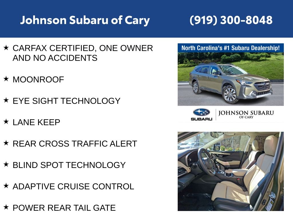 Beyond the impressive standard features, this Outback also offers a variety of thoughtful upgrades to enhance your driving pleasure. The Auto-Dimming Exterior Mirror with Approach Light, Footwell Illumination Kit, LED Upgrade, and Windshield Sunshade add both style and convenience.