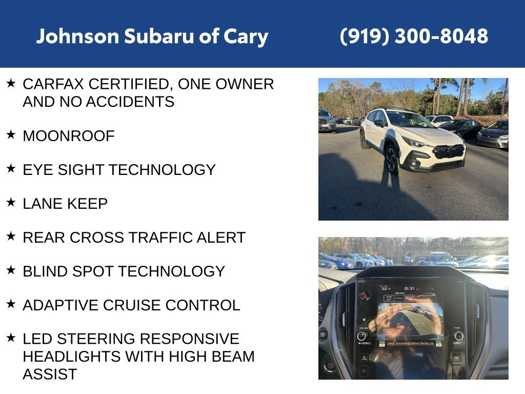 Step inside the 2025 Crosstrek Limited and discover a cabin that seamlessly blends premium materials and thoughtful design. The leather-trimmed upholstery, heated front seats, and intuitive 11.6-inch Multimedia Plus System create an inviting and comfortable environment. Enjoy the convenience of advanced safety features like Eyesight Driver Assist Technology, Blind Spot Detection, and Rear Cross-Traffic Alert, keeping you and your loved ones secure on the road.