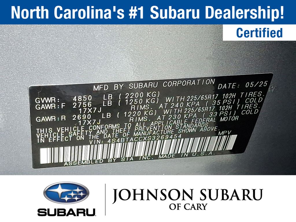 Certified. Ice Silver Metallic 2025 Subaru Outback Premium AWD CVT Lineartronic 2.5L 4-Cylinder DOHC 16V