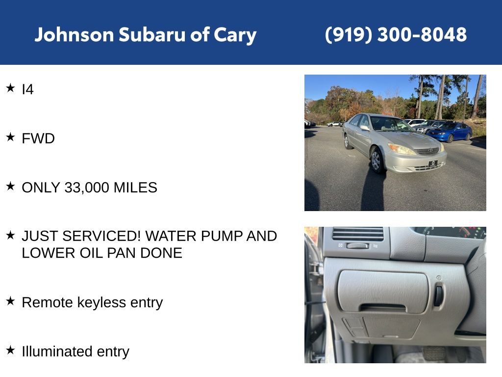 This 2004 Toyota Camry with 33,570 miles brings the long term reliability and easygoing comfort that has made the Camry such a trusted daily driver.
